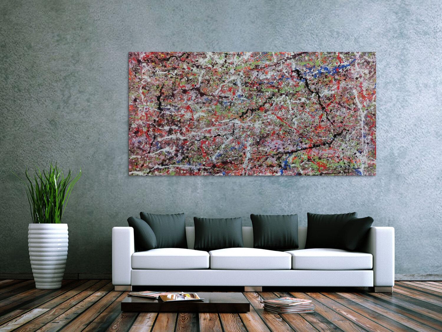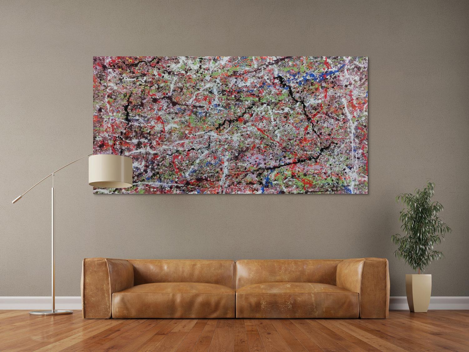 Abstraktes Gemälde auf Leinwand Abstraktes Acrylbild bunt modern spashart in 100x200cm von Alex Zerr