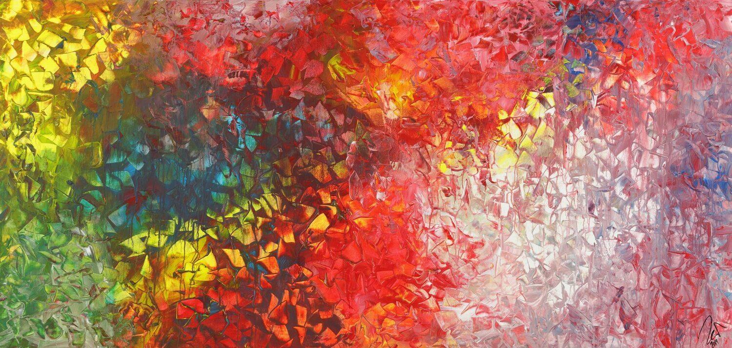 Dieses abstrakte Acrylbild ist ein handgemaltes Original vom Künstler Alex Zerr aus Bad Lisppringe und ist im Jahr 2019 in seinem Atelier entstanden. Das Bild hat eine Größe von 75x160cm und ist bereits auf einem hochwertigen und stabilem Rahmen aufgespannt. Dadurch kann das Bild nach der Lieferung direkt an die Wand gehängt werden und sofort in Ihrem Raum wirken. Alle Seiten des Gemäldes sind passend zum Motiv bemalt, so dass kein zusätzlicher Rahmen benötigt wird.