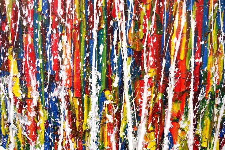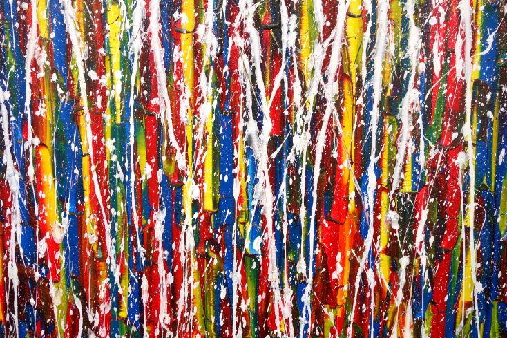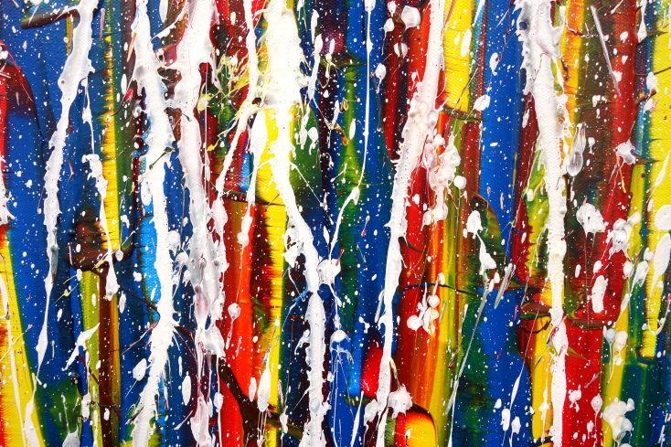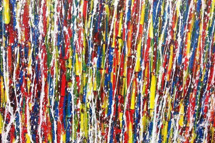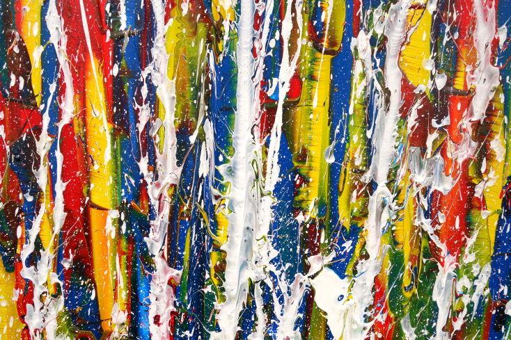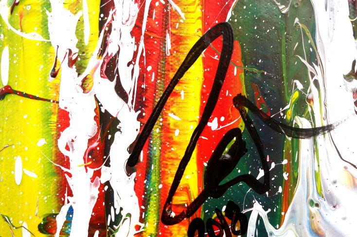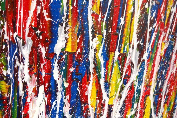Abstraktes Acrylbild bunt weiße Streifen modern expressionistisch Action Painting