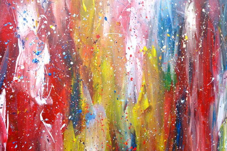 Hallo, ich bin Alex Zerr, der Künstler hinter diesem Gemälde. In meinem Atelier in Bad Lippspringe erschaffe ich abstrakte Acrylbilder, überwiegend im Action-Painting-Stil. Meißtens mit Acrylfarben und auf sehr großen XXL-Leinwänden, die meinem kreativen Prozess besonders viel Freiheit erlauben und oft zu beeindruckenden Gemälden führen.