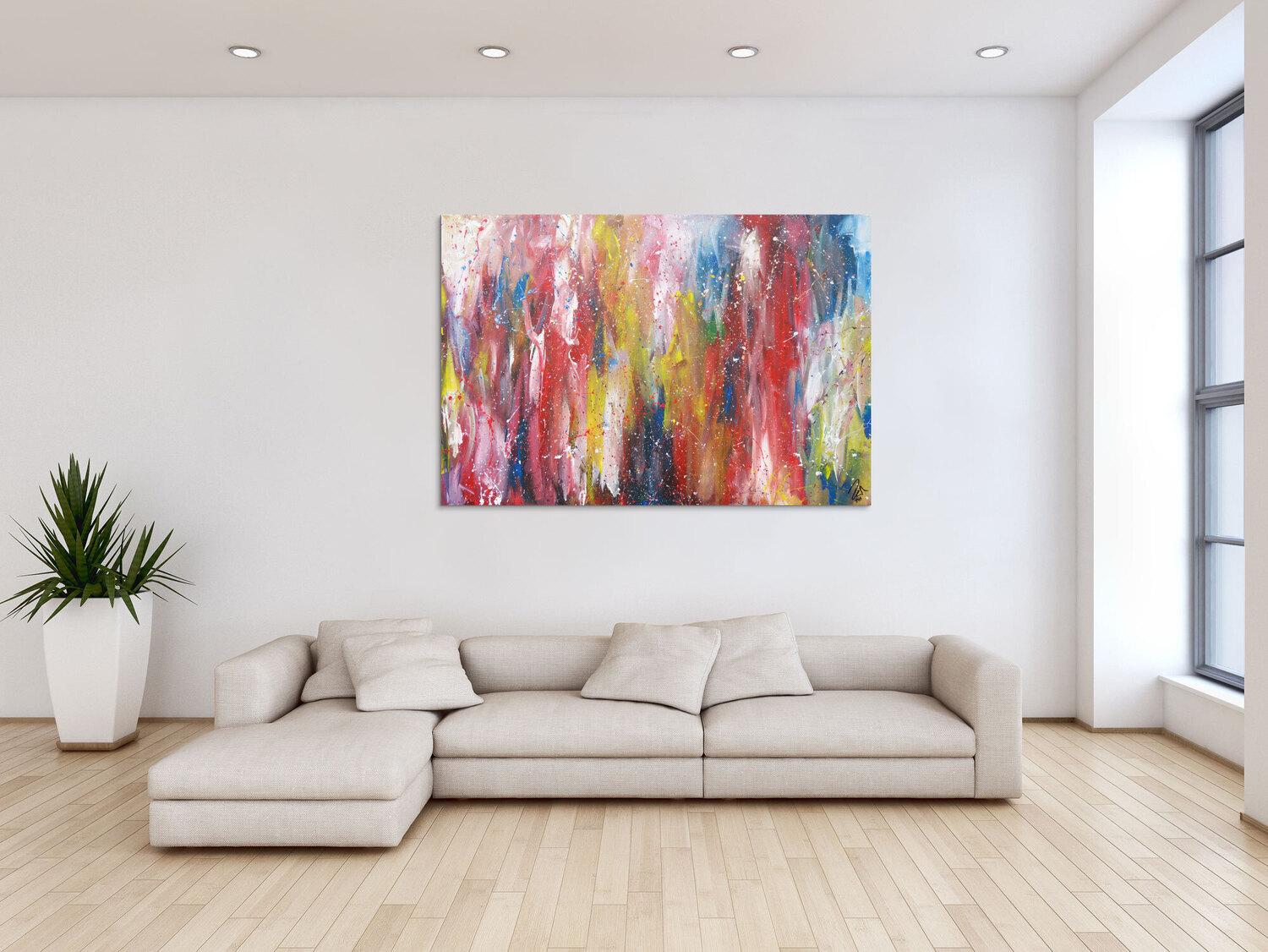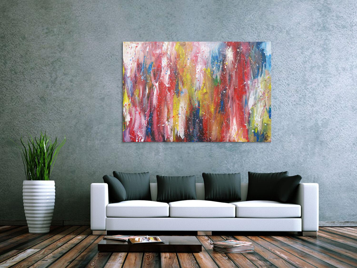 Die großformatigen, abstrakten Acrylgemälde sind ideal für Wohnzimmer, Schlafzimmer, Büros oder Geschäftsräume. Sie setzen farbenfrohe Akzente und schaffen eine lebendige, individuelle Atmosphäre die Sie und Ihre Gäste oder Kunden beeindrucken wird.
