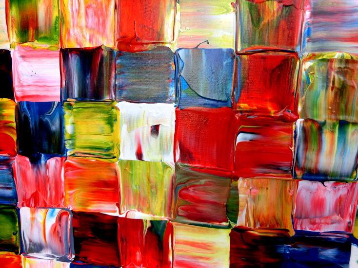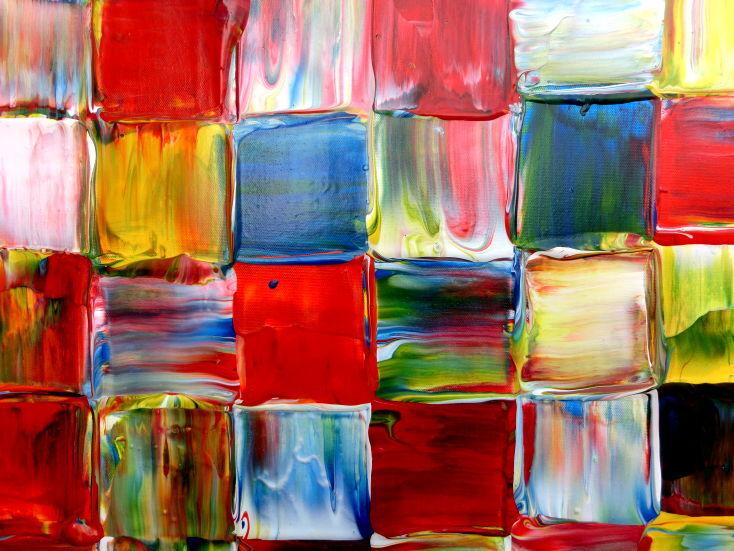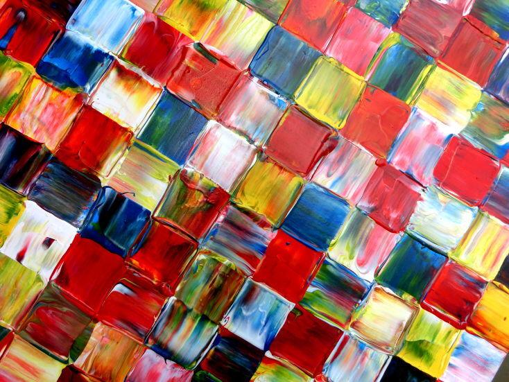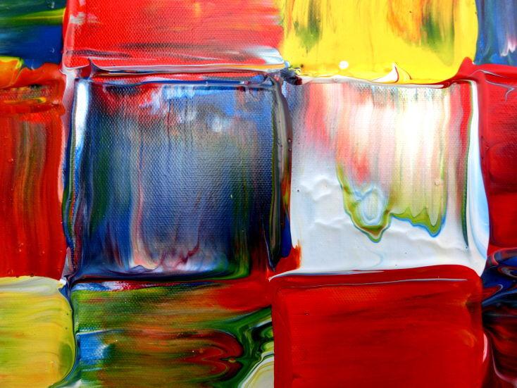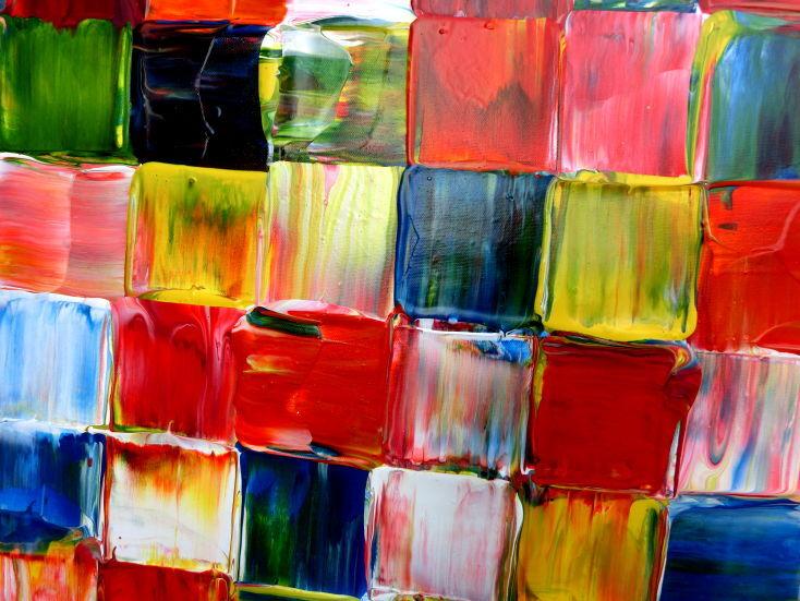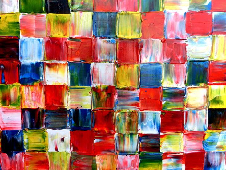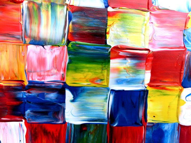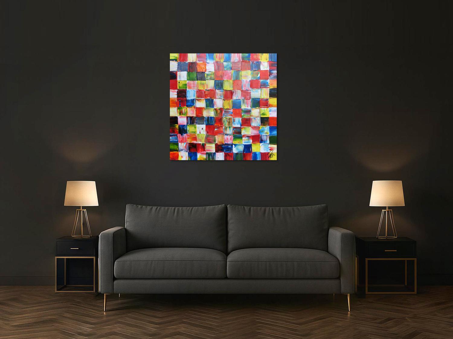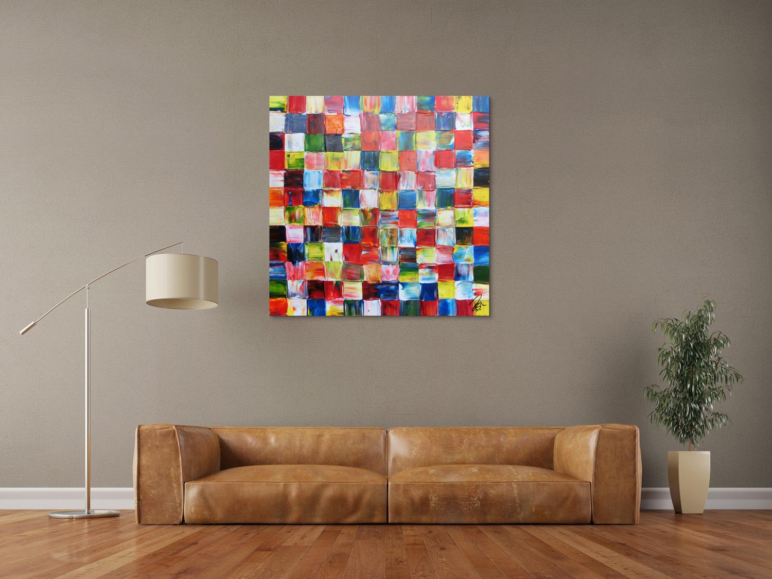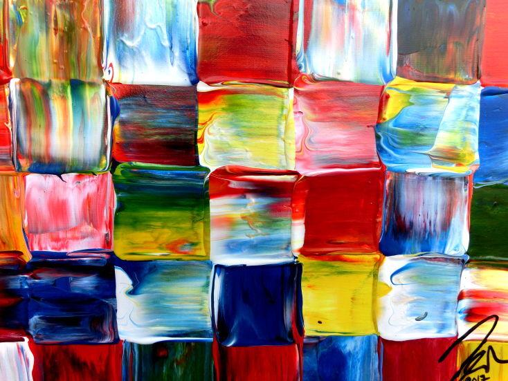 Abstraktes Acrylbild bunte Flächen modern mit vielen Farben