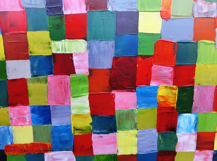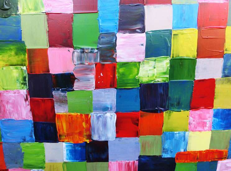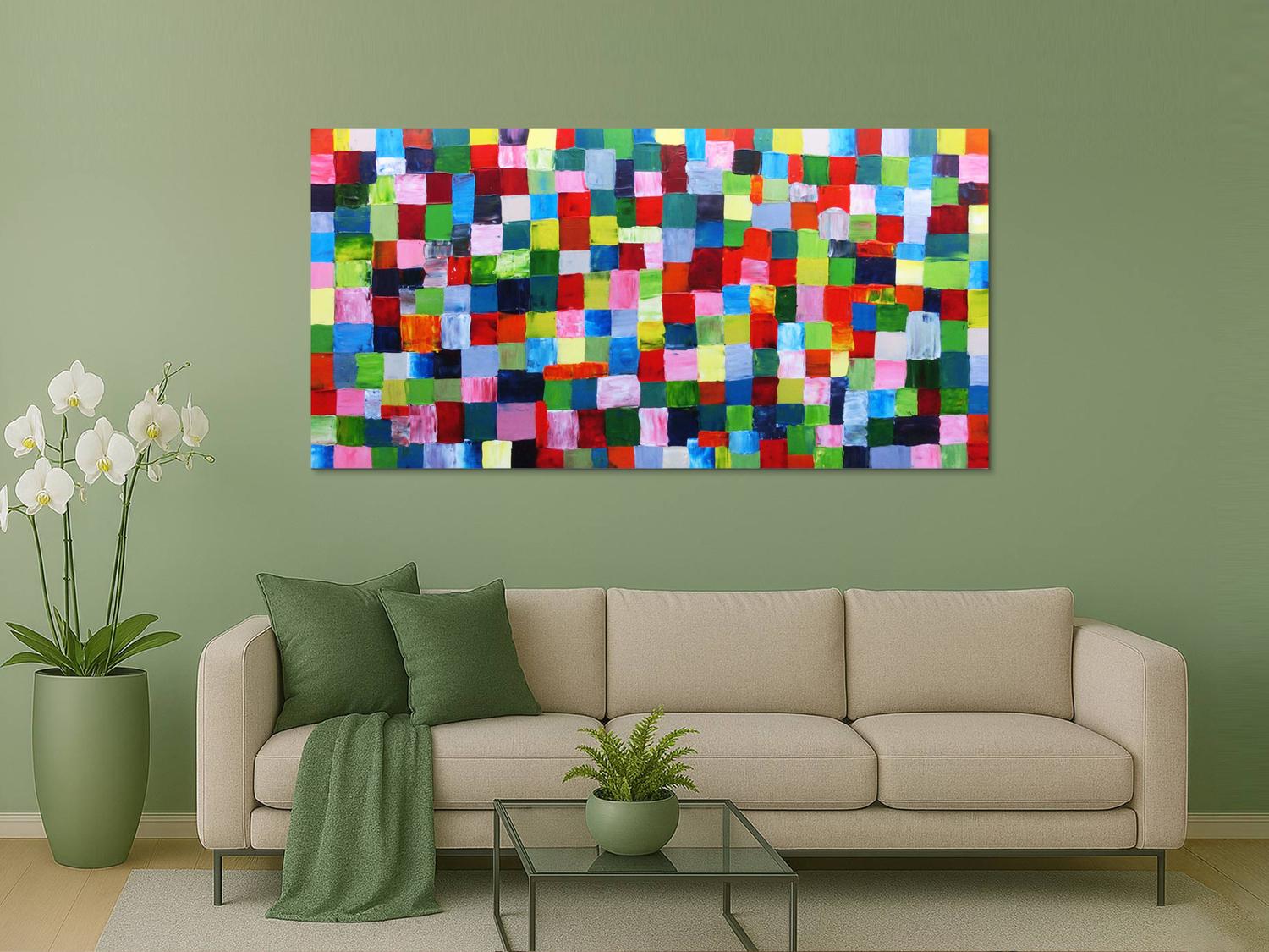 Abstraktes Gemälde auf Leinwand Abstraktes Acrylbild bunte Kacheln in 100x200cm von Alex Zerr