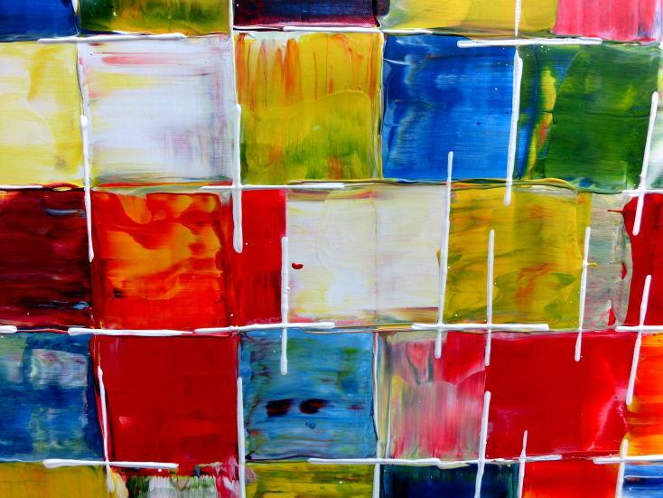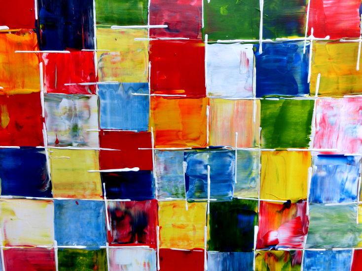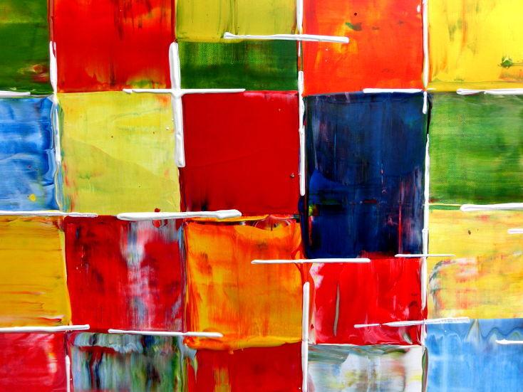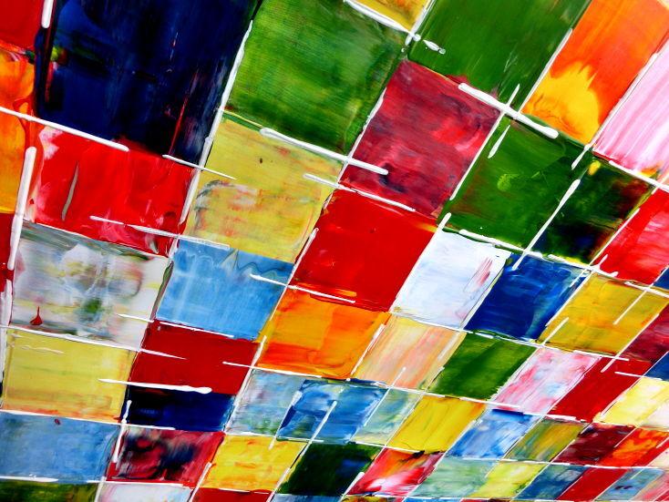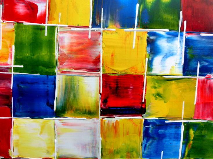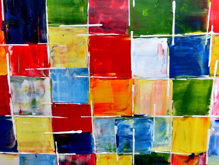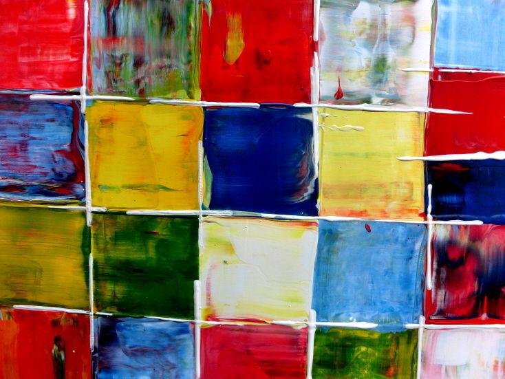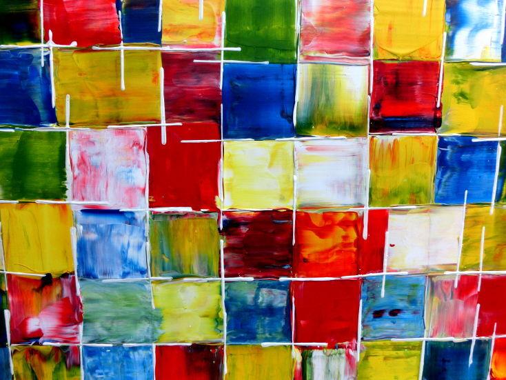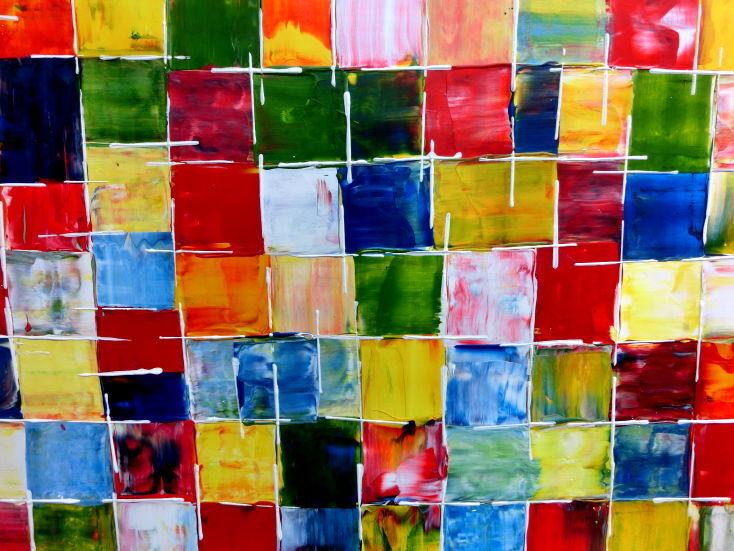 Abstraktes Acrylbild bunte Kacheln sehr modern viele Farben bunte Flächen