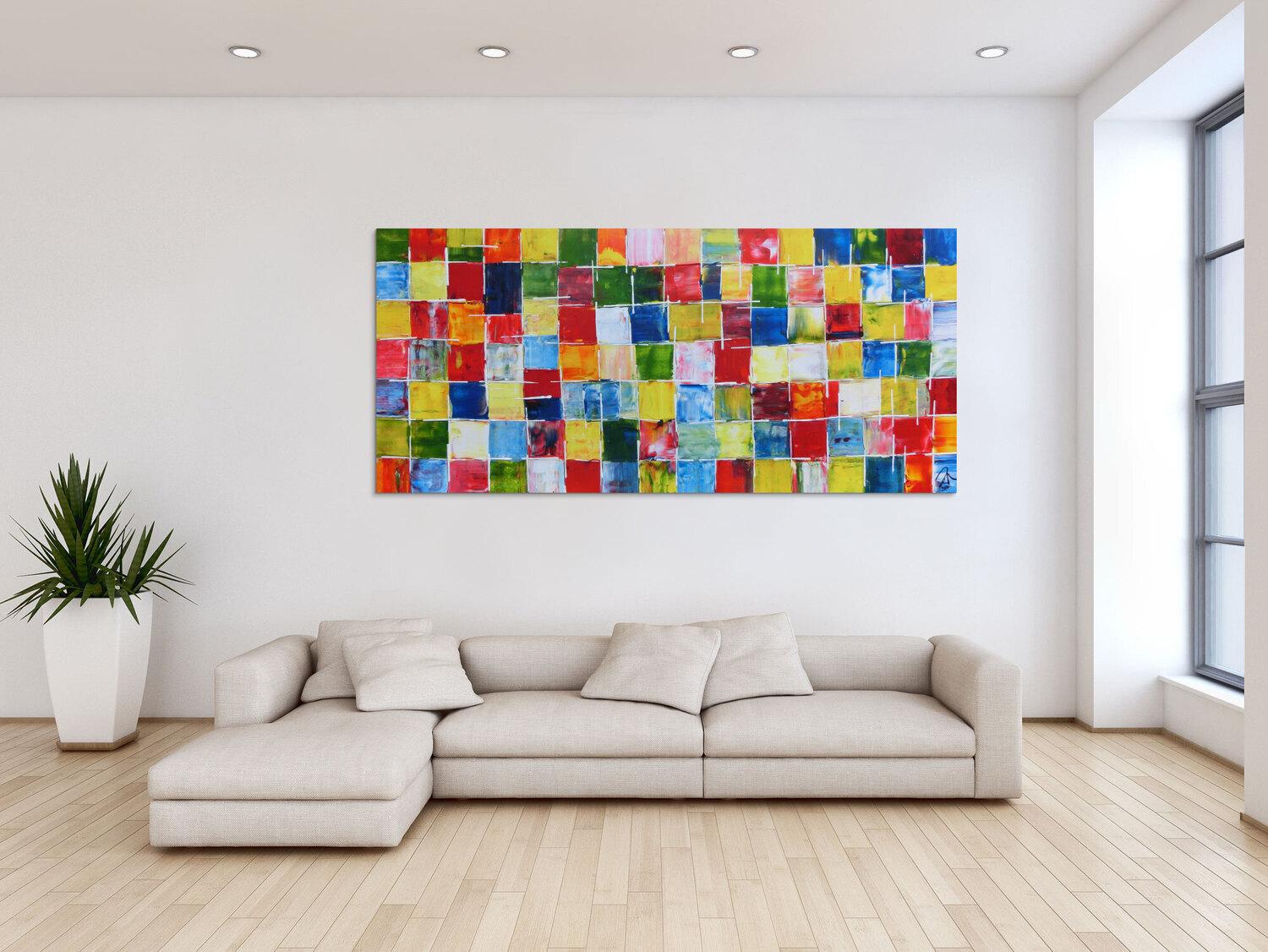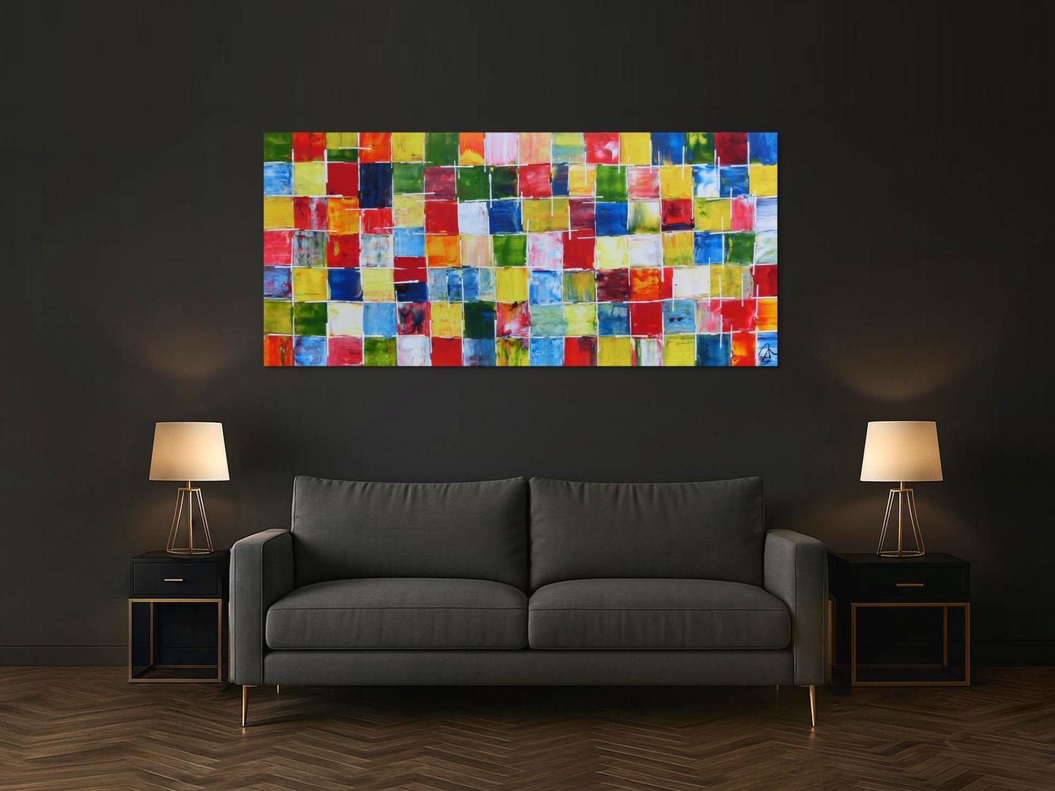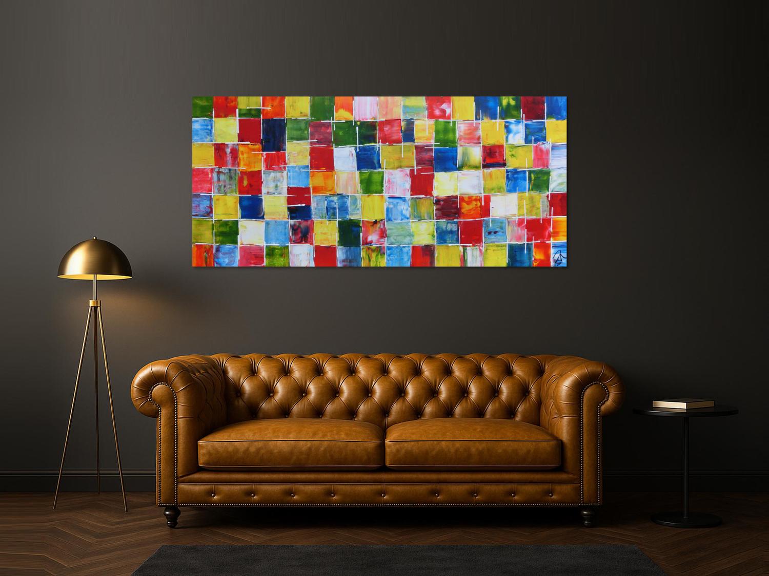 Abstraktes Gemälde auf Leinwand Abstraktes Acrylbild bunte Kacheln sehr modern viele Farben bunte Flächen in 90x200cm von Alex Zerr