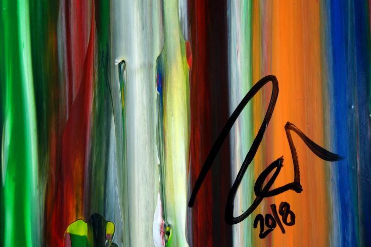 Dieses abstrakte Acrylbild ist ein handgemaltes Original vom Künstler Alex Zerr aus Bad Lisppringe und ist im Jahr 2018 in seinem Atelier entstanden. Das Bild hat eine Größe von 120x80cm und ist bereits auf einem hochwertigen und stabilem Rahmen aufgespannt. Dadurch kann das Bild nach der Lieferung direkt an die Wand gehängt werden und sofort in Ihrem Raum wirken. Alle Seiten des Gemäldes sind passend zum Motiv bemalt, so dass kein zusätzlicher Rahmen benötigt wird.
