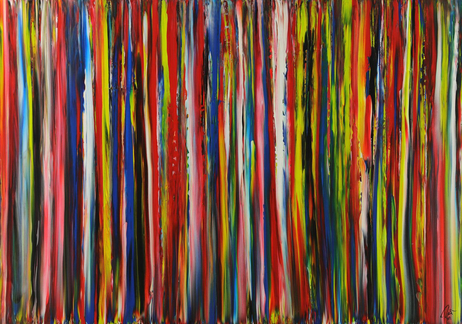 Hallo, ich bin Alex Zerr, der Künstler hinter diesem Gemälde. In meinem Atelier in Bad Lippspringe erschaffe ich abstrakte Acrylbilder, überwiegend im Action-Painting-Stil. Meißtens mit Acrylfarben und auf sehr großen XXL-Leinwänden, die meinem kreativen Prozess besonders viel Freiheit erlauben und oft zu beeindruckenden Gemälden führen.