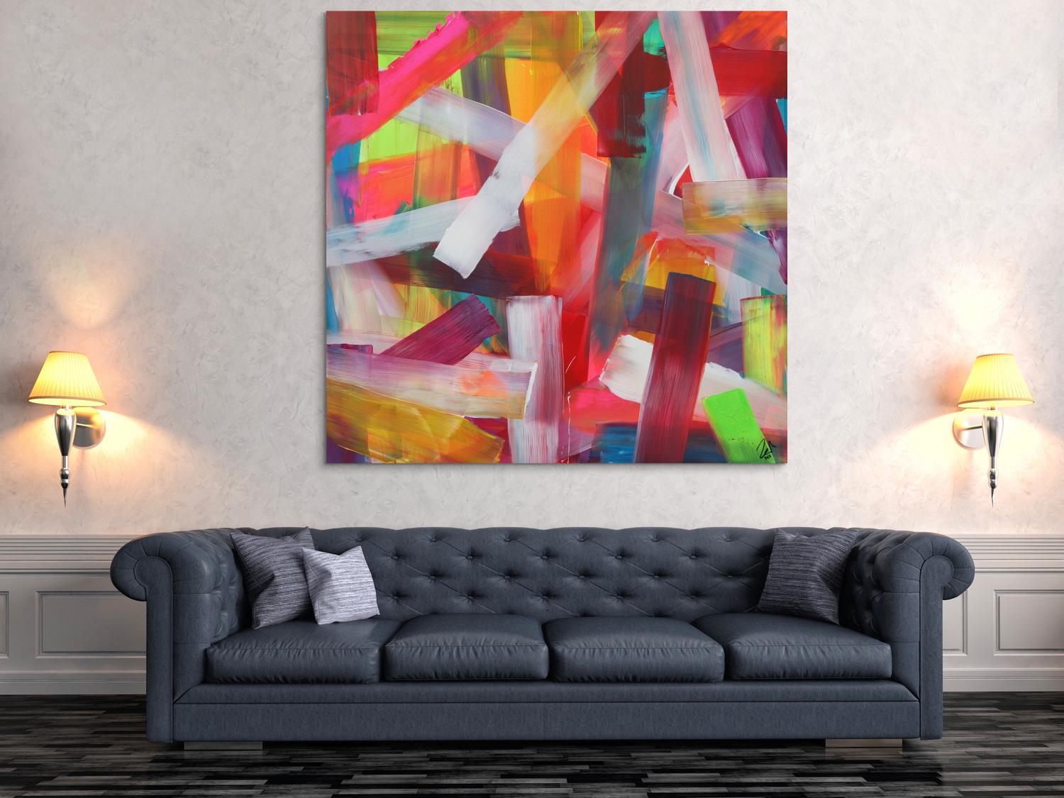Die großformatigen, abstrakten Acrylgemälde sind ideal für Wohnzimmer, Schlafzimmer, Büros oder Geschäftsräume. Sie setzen farbenfrohe Akzente und schaffen eine lebendige, individuelle Atmosphäre die Sie und Ihre Gäste oder Kunden beeindrucken wird.