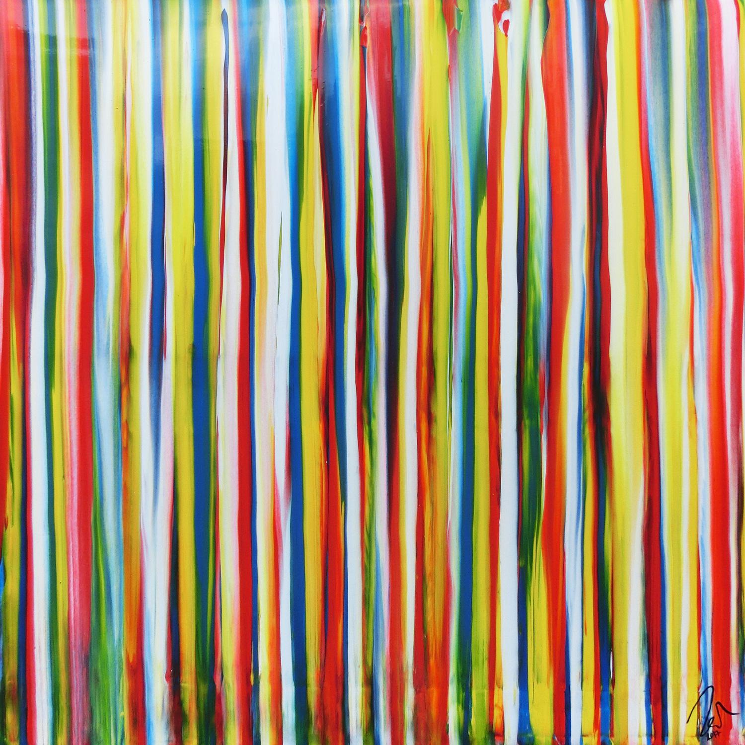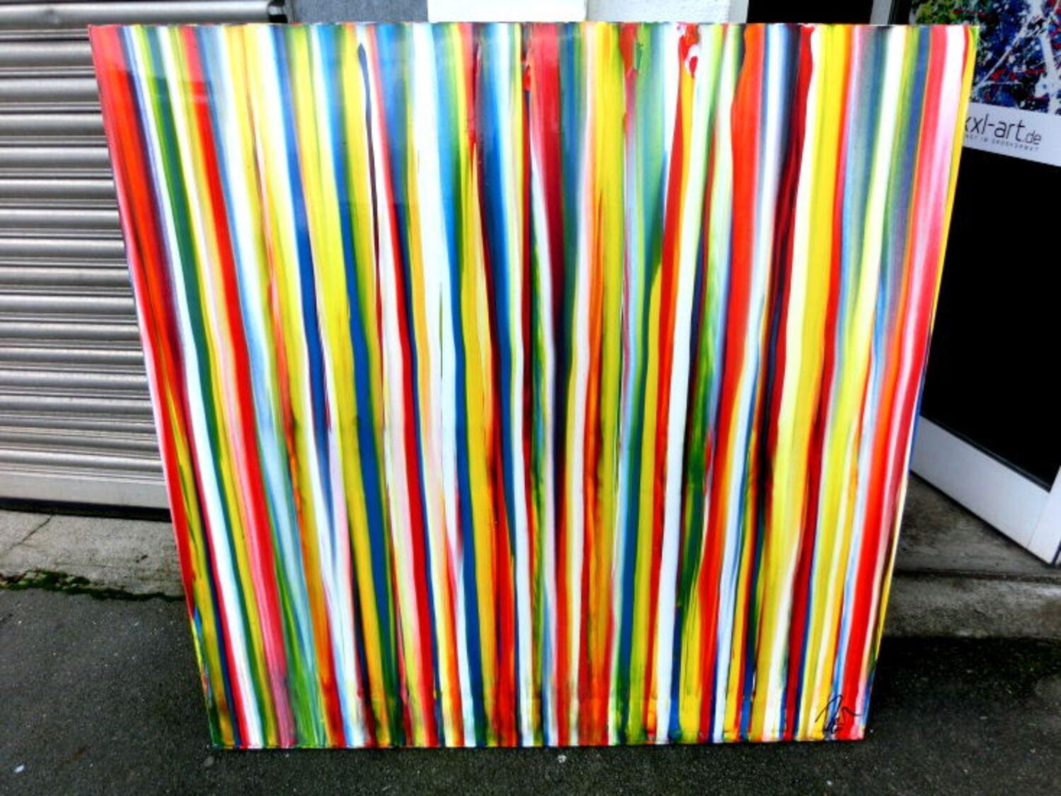 Abstraktes Gemälde auf Leinwand Abstraktes Acrylbild bunte Streifen sehr modern Spachteltechnik viele Farben in 130x130cm von Alex Zerr