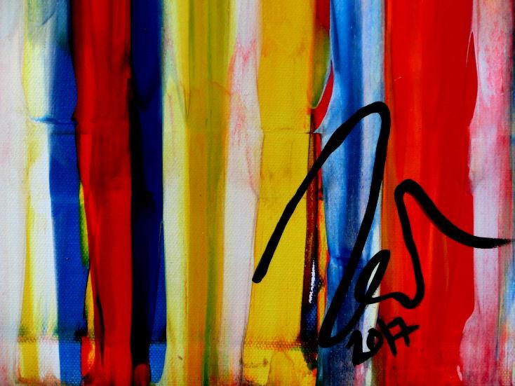 Abstraktes Acrylbild bunte Streifen sehr modern Spachteltechnik viele Farben