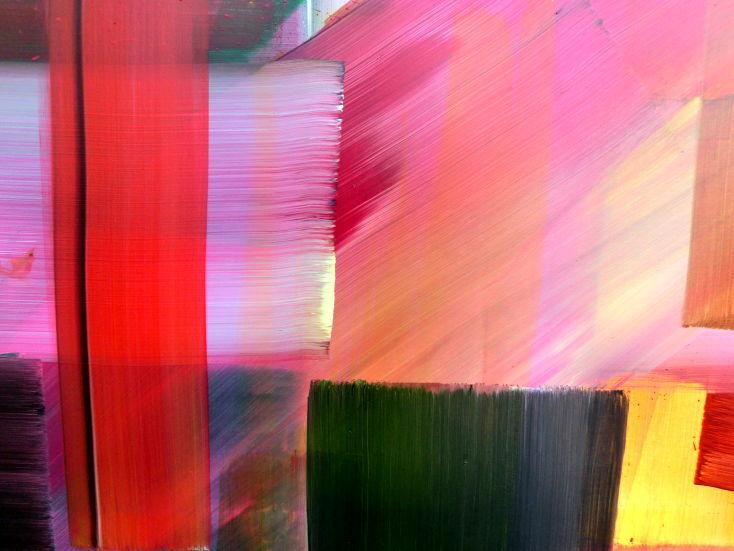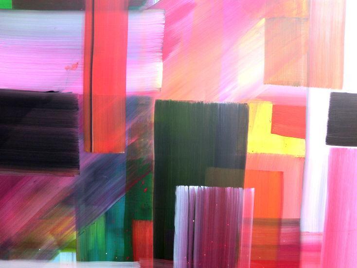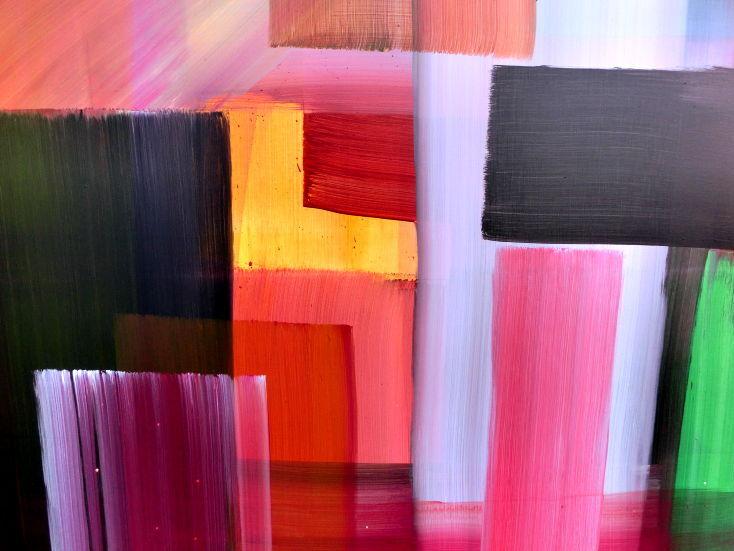 Abstraktes Acrylbild bunte Streifen sehr modern viele Farben hell und dunkel zeitgenössisch