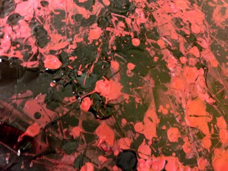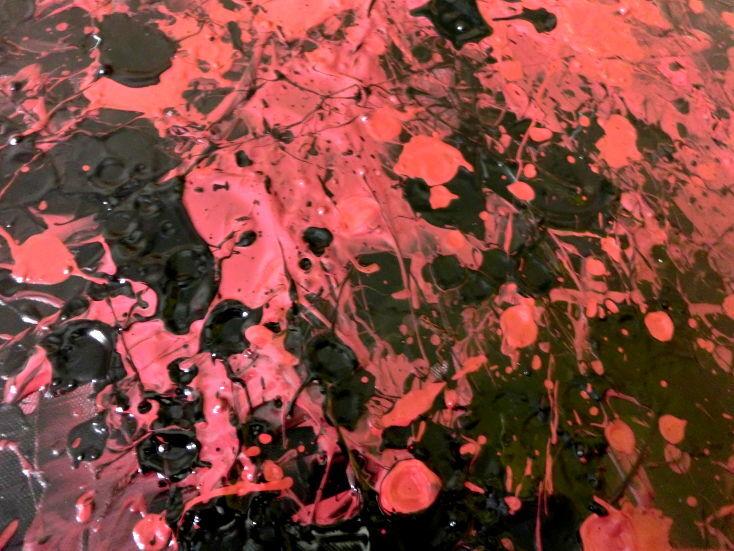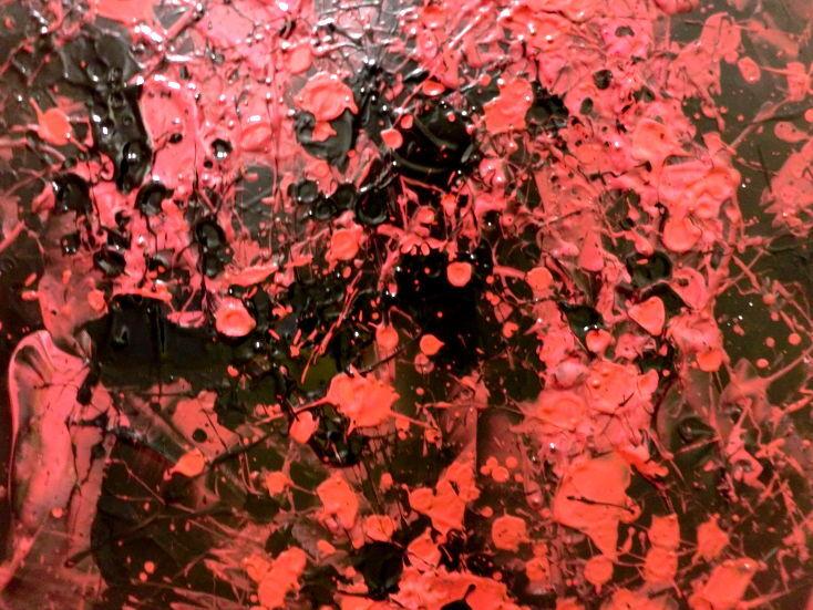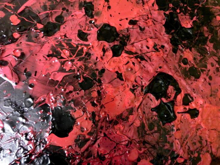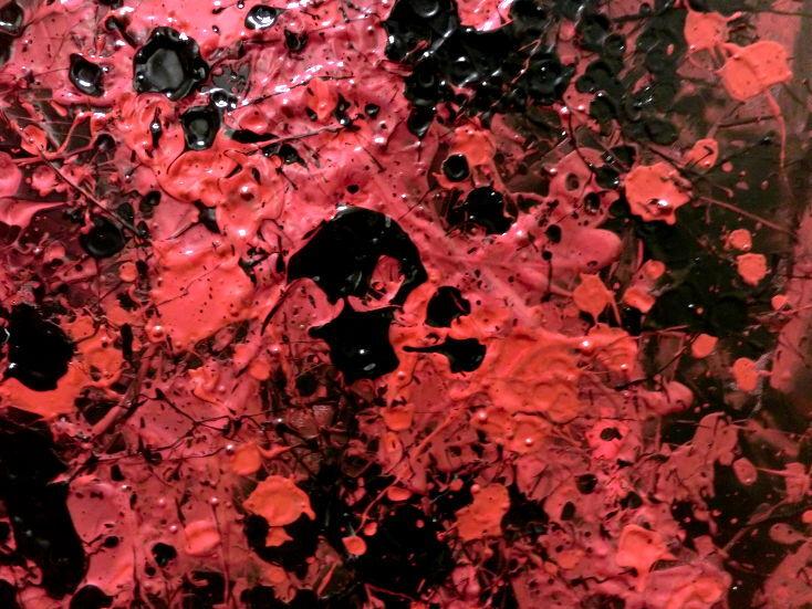 Abstraktes Acrylbild dunkel krapprot schwarz sehr modern Action Painting Splash Art