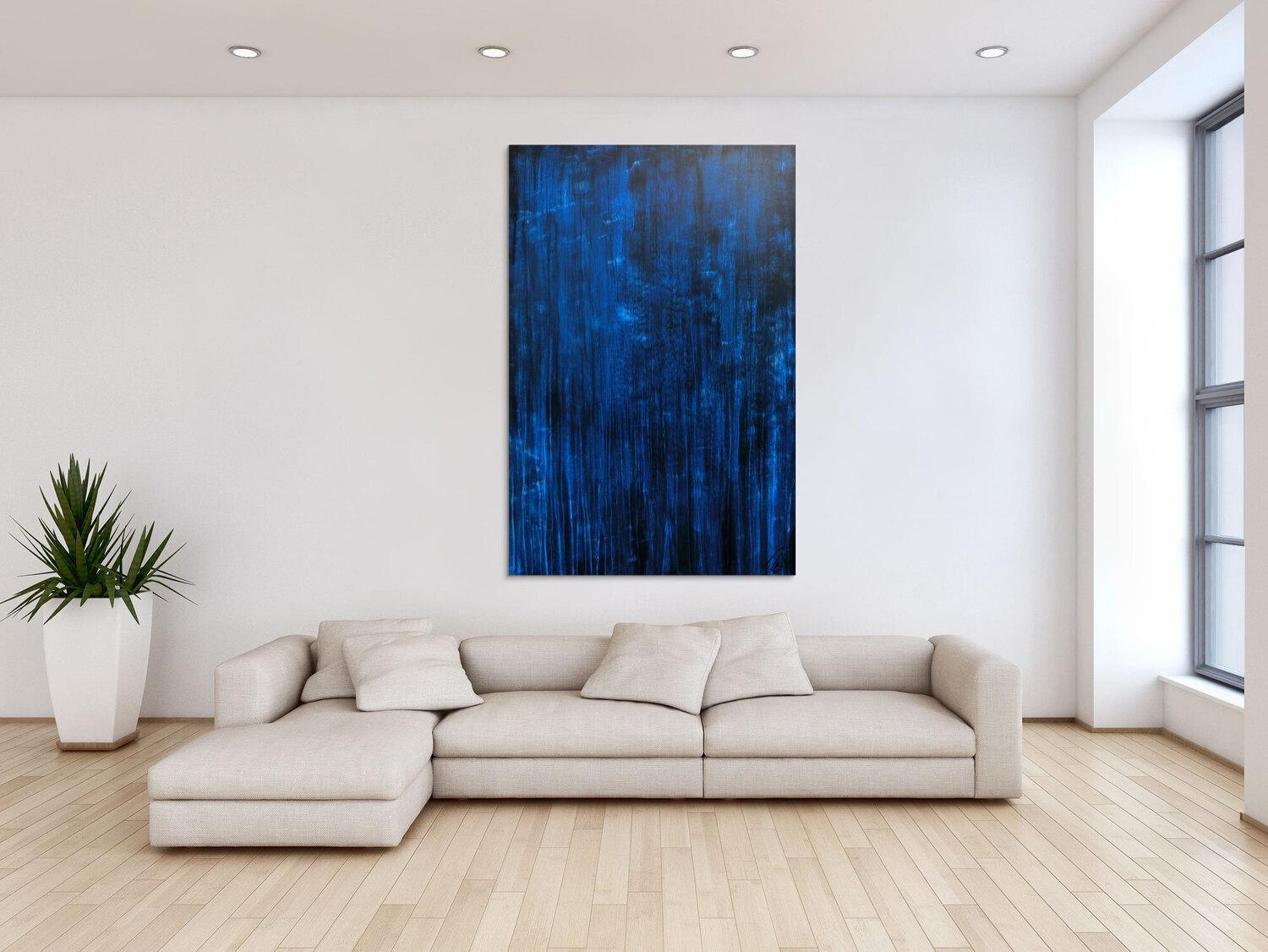 Abstraktes Acrylbild dunkelblau sehr modernes zeitgenössisches Gemälde