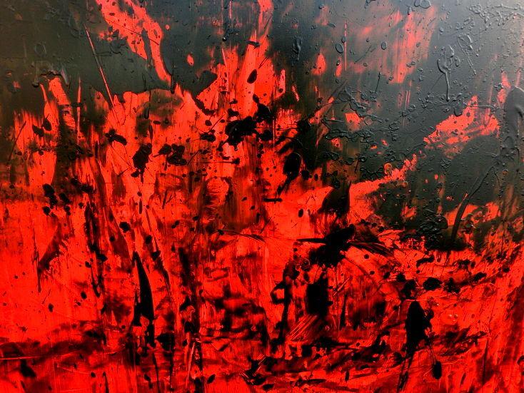 Abstraktes Acrylbild expressionistisch modern in rot schwarz minimalistisch schlicht
