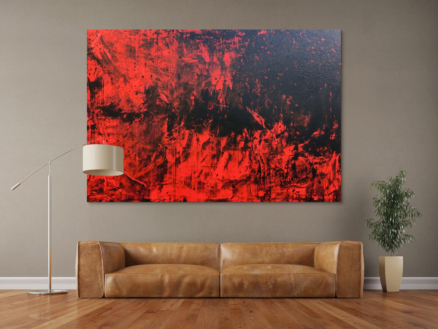 Abstraktes Gemälde auf Leinwand Abstraktes Acrylbild expressionistisch modern in rot schwarz minimalistisch schlicht in 140x200cm von Alex Zerr