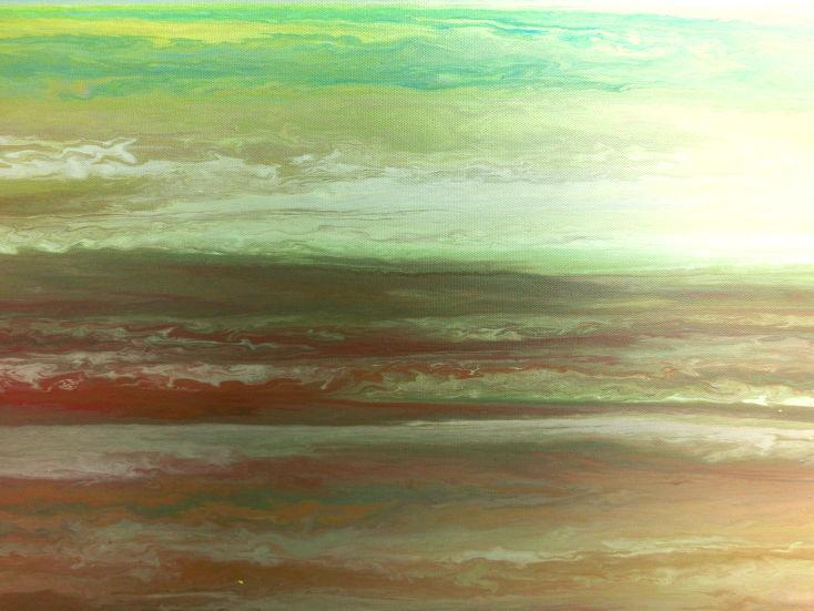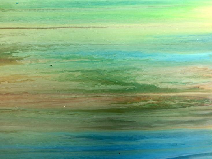 Abstraktes Acrylbild Fließtechnik Fluid Painting sehr modern helle Farben grau grün hellbau weiß