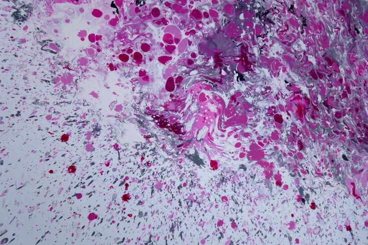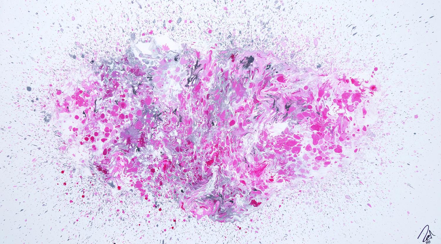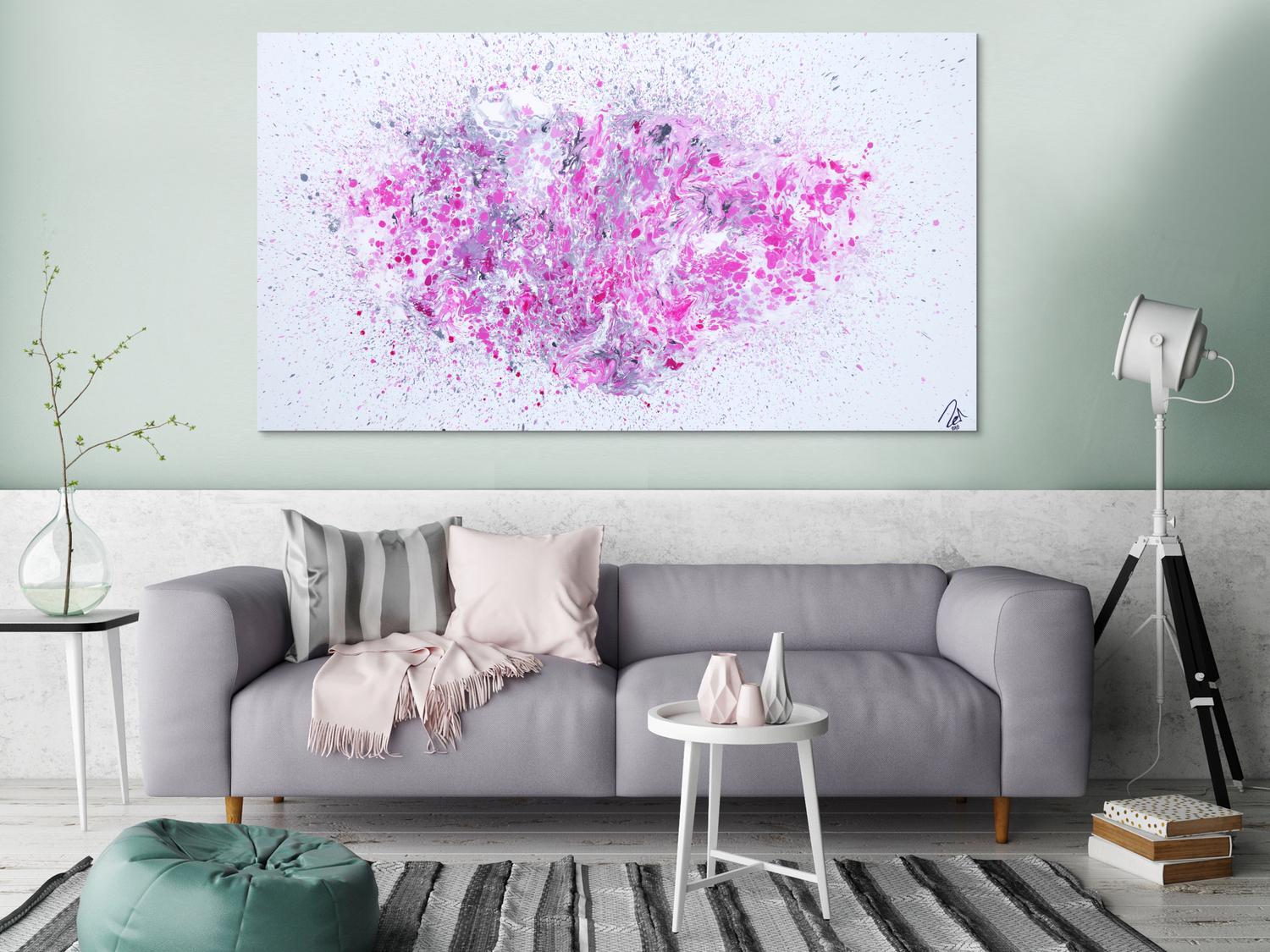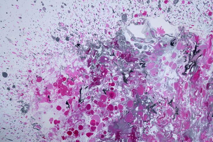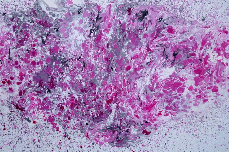 Abstraktes Acrylbild Fluid Painting Fließtechnik weiß grau rosa modern zeitgenössisch