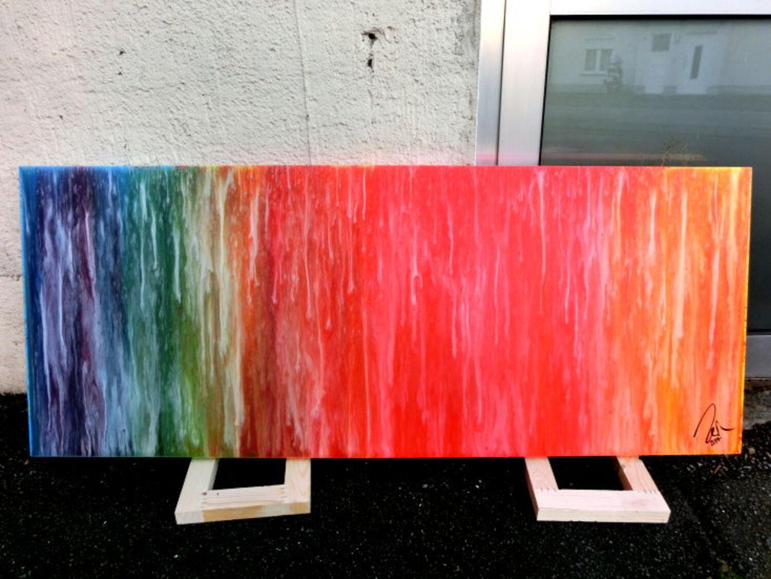 Abstraktes Gemälde auf Leinwand Abstraktes Acrylbild Fluid Painting sehr bunt modern viele Farben in 60x150cm von Alex Zerr