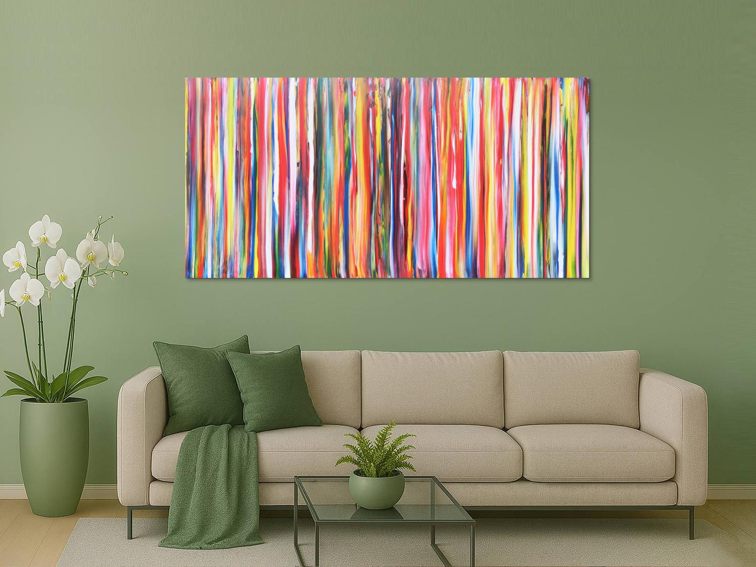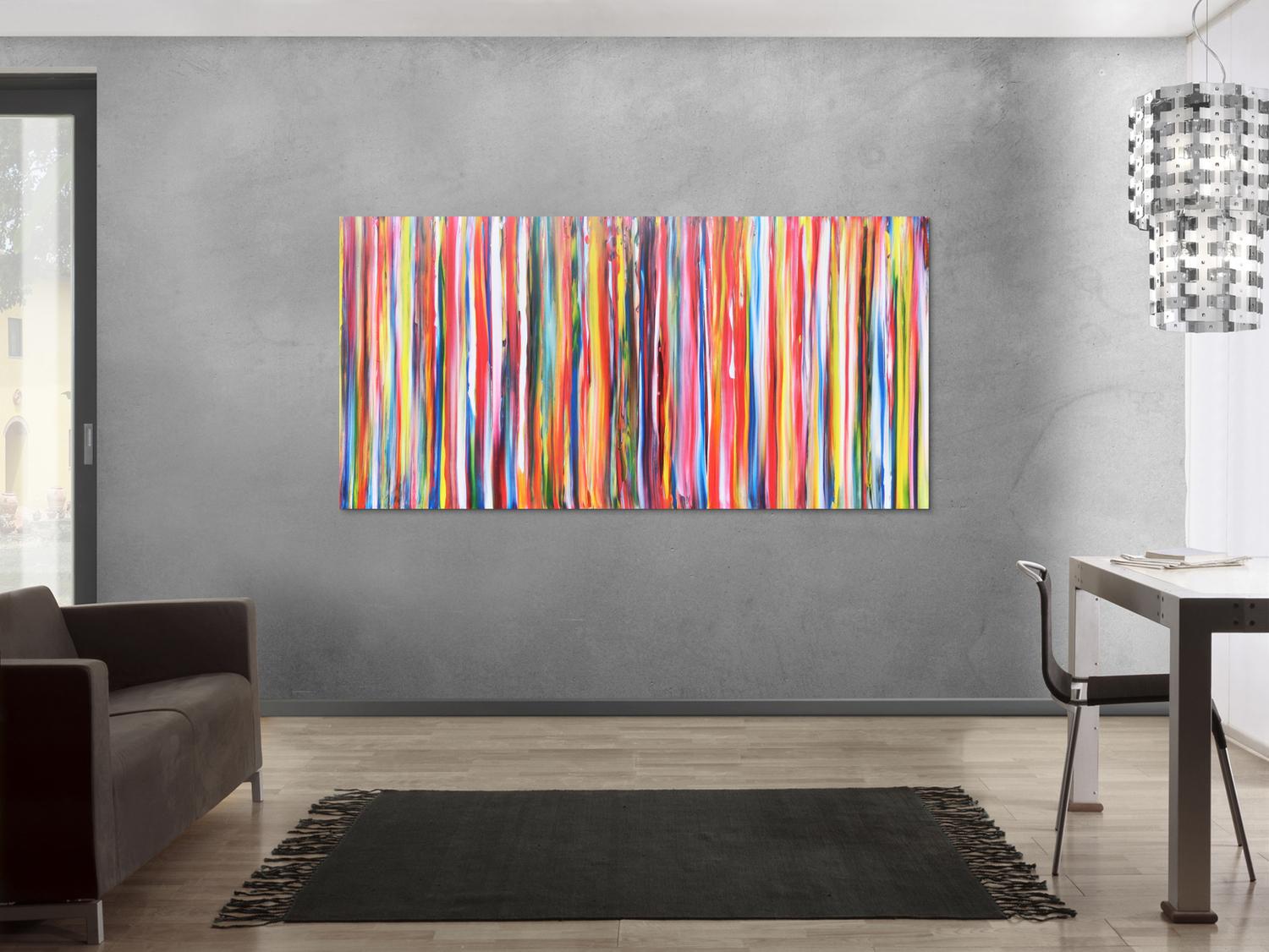 Abstraktes Gemälde auf Leinwand Abstraktes Acrylbild Gemälde bunte Streifen sehr modern helle bunte Farben in 100x200cm von Alex Zerr