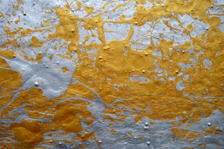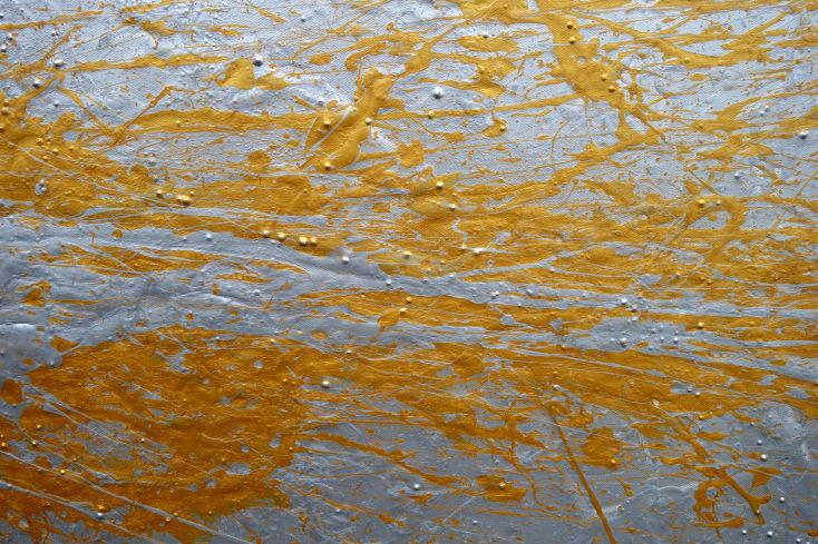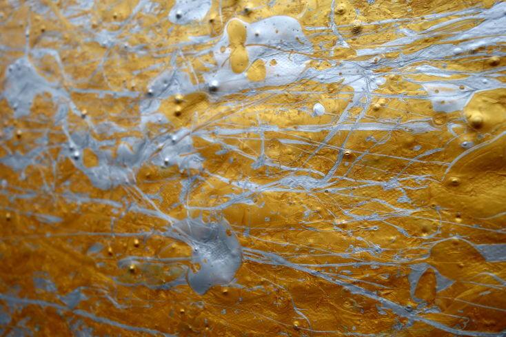 Abstraktes Acrylbild gold und silber Action Painting expressionistisch modern