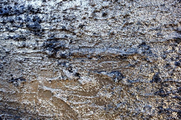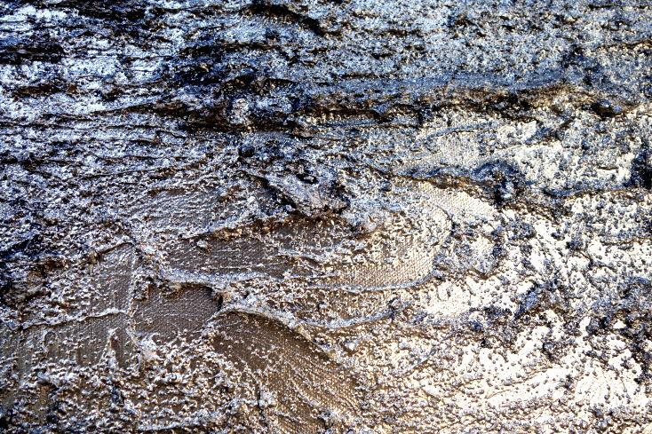 Abstraktes Acrylbild gold und silber mit grober Struktur Mischtechnik expressionistisch schlicht hochformat