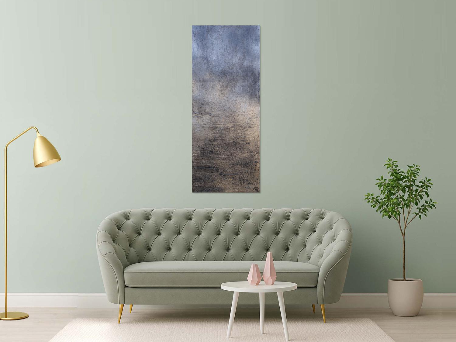Dieses abstrakte Acrylbild ist ein handgemaltes Original vom Künstler Alex Zerr aus Bad Lisppringe und ist im Jahr 2018 in seinem Atelier entstanden. Das Bild hat eine Größe von 150x60cm und ist bereits auf einem hochwertigen und stabilem Rahmen aufgespannt. Dadurch kann das Bild nach der Lieferung direkt an die Wand gehängt werden und sofort in Ihrem Raum wirken. Alle Seiten des Gemäldes sind passend zum Motiv bemalt, so dass kein zusätzlicher Rahmen benötigt wird.