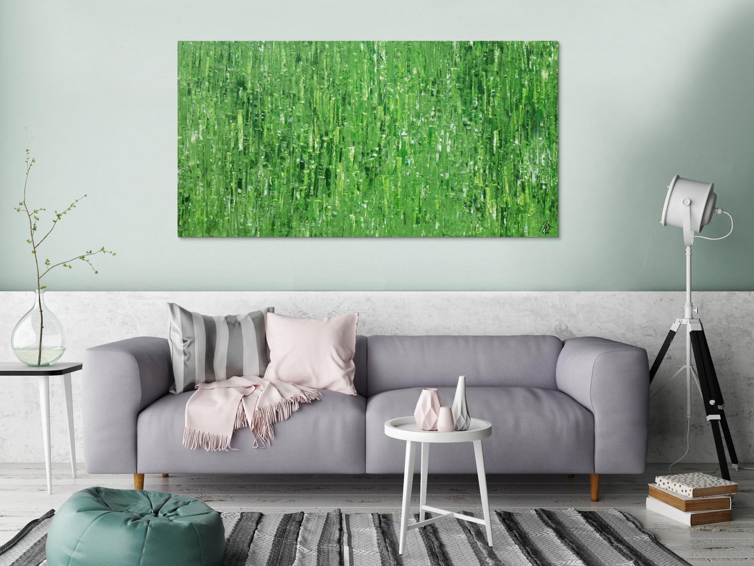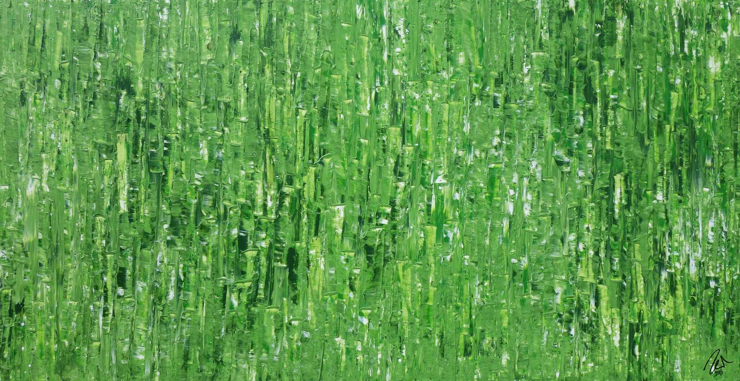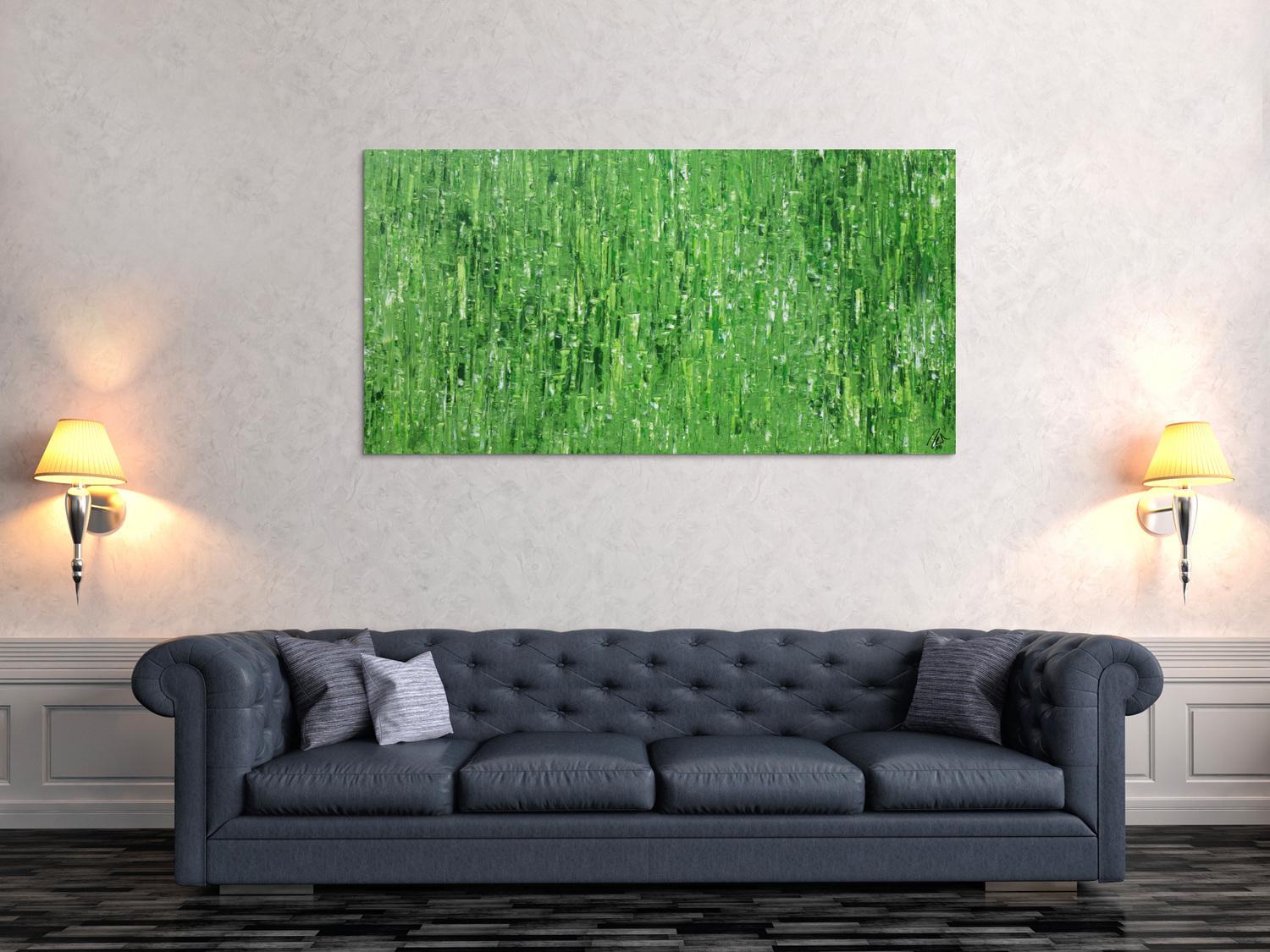 Abstraktes Gemälde auf Leinwand Abstraktes Acrylbild grün zeitgenössisch moderne Malerei handgemaltes Bild expressionistisch in 80x160cm von Alex Zerr