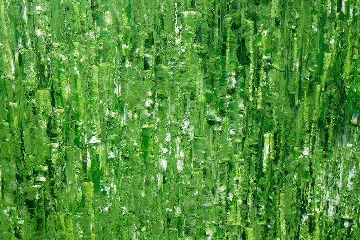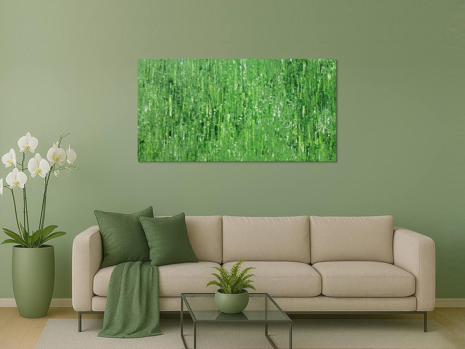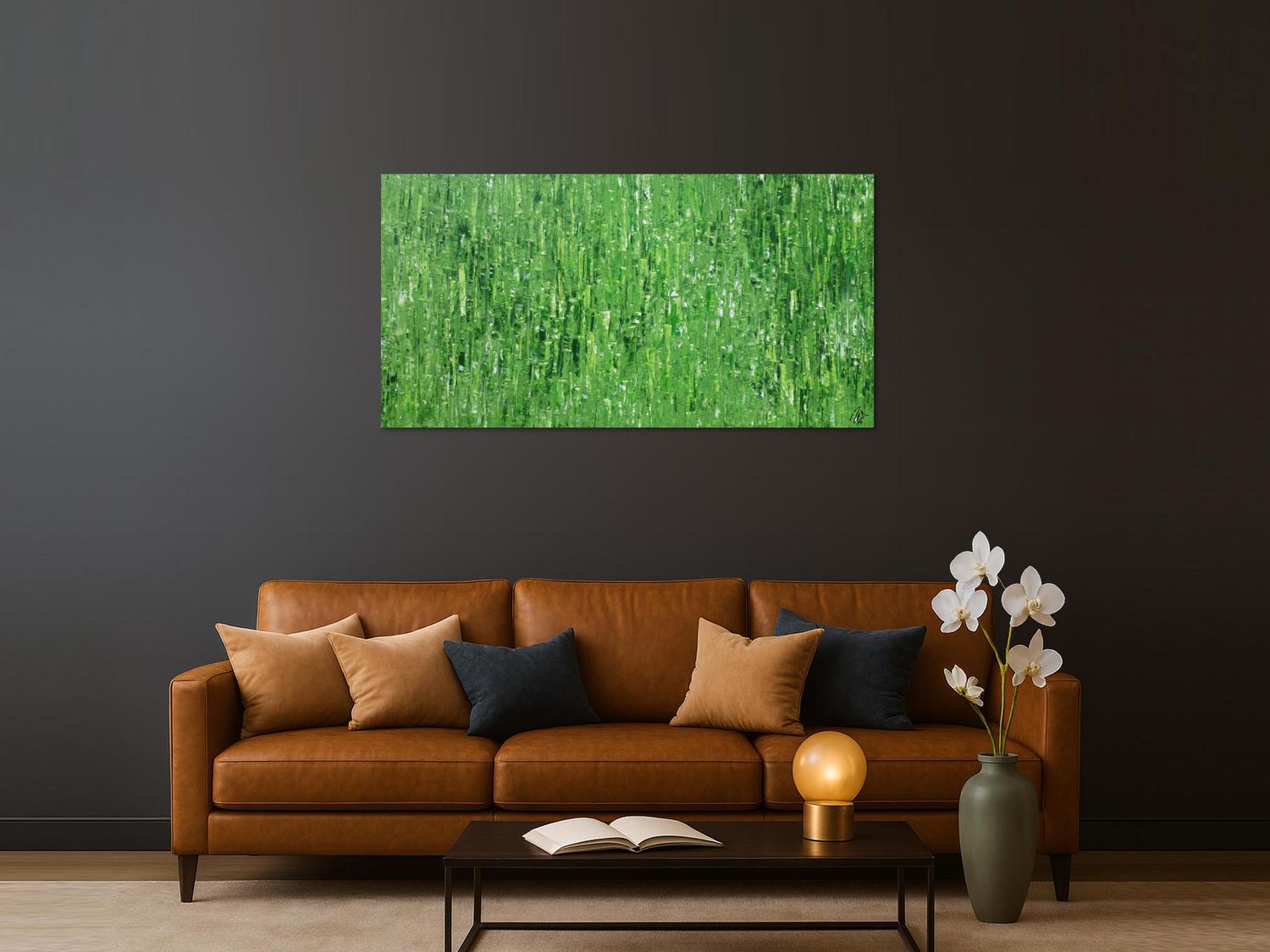 Abstraktes Gemälde auf Leinwand Abstraktes Acrylbild grün zeitgenössisch moderne Malerei handgemaltes Bild expressionistisch in 80x160cm von Alex Zerr