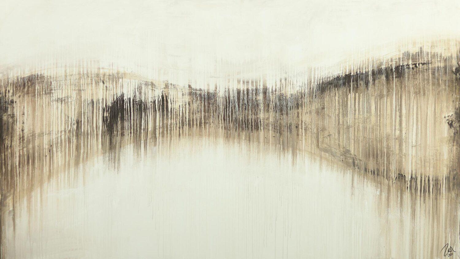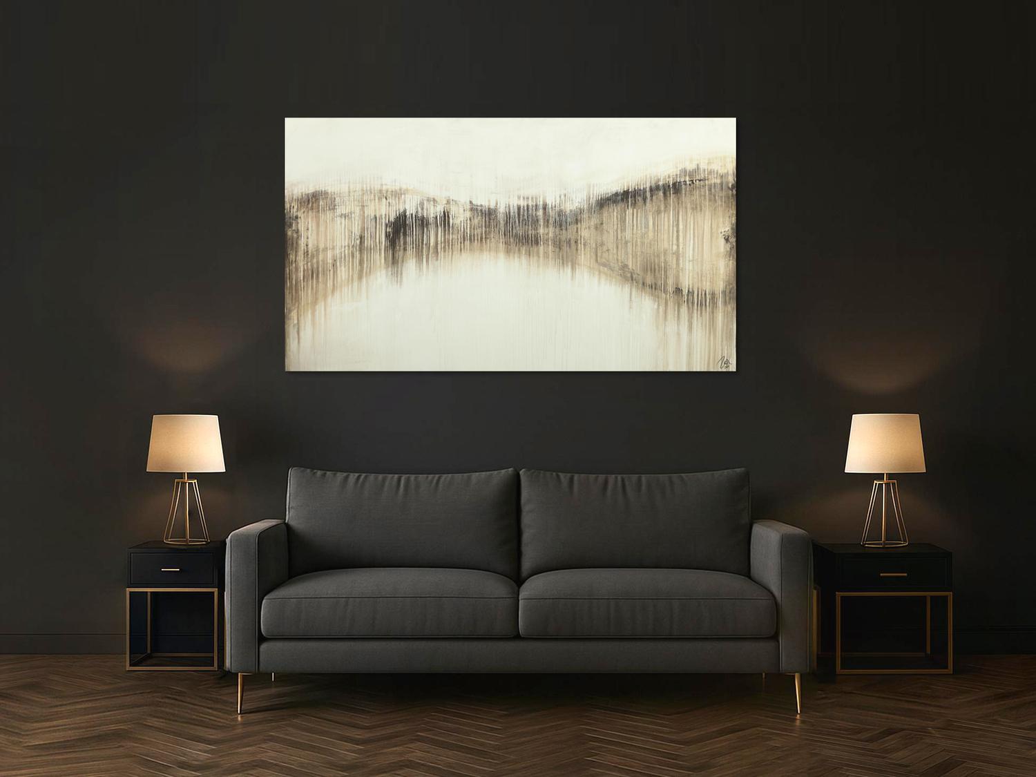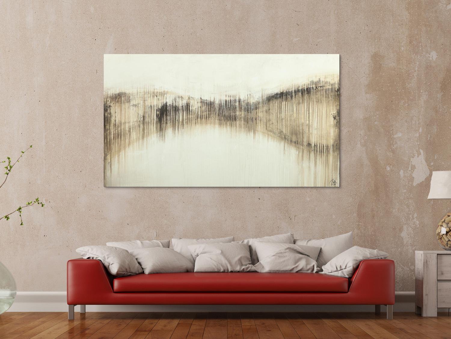 Abstraktes Gemälde auf Leinwand Abstraktes Acrylbild handgemalt auf Leinwand weiß braun beige in 100x180cm von Alex Zerr
