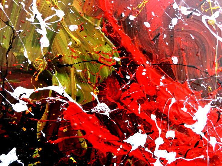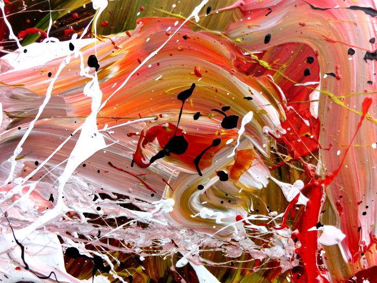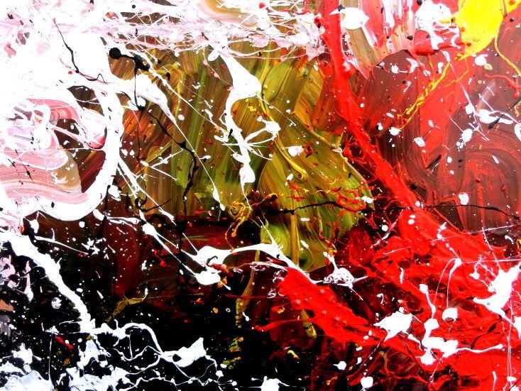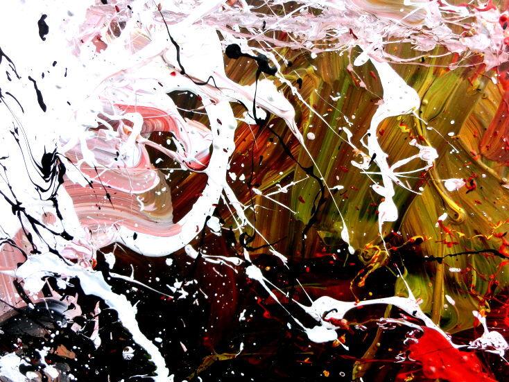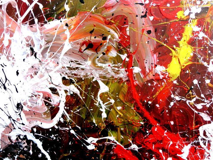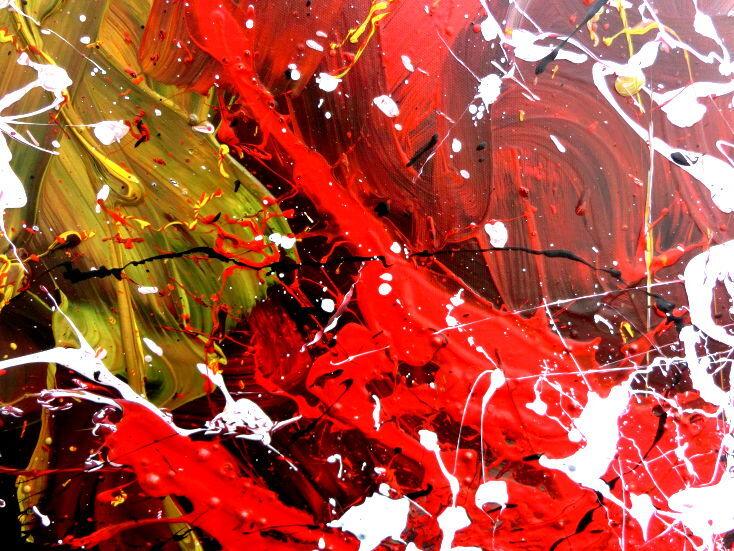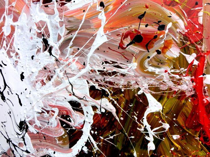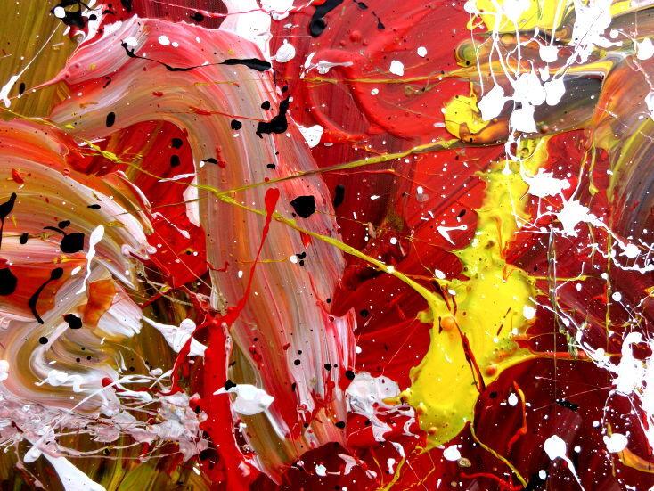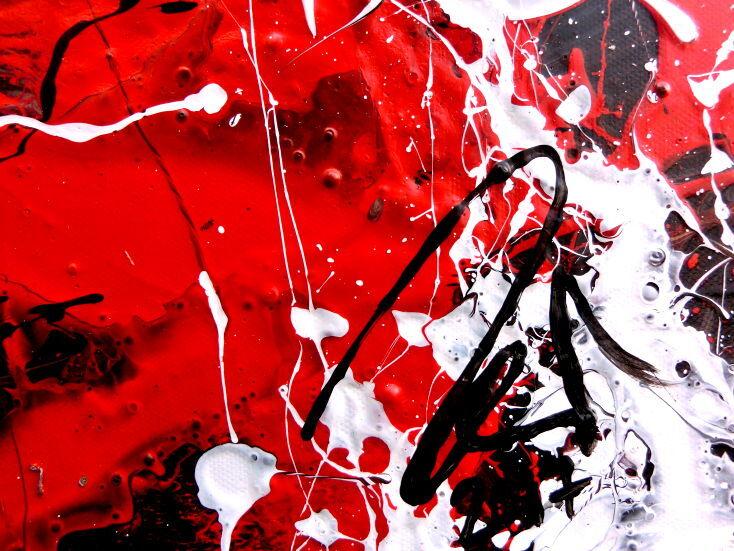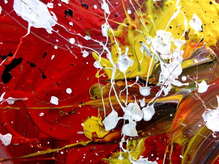 Abstraktes Acrylbild handgemalt modern Action Painting weiß rot gelb schwarz