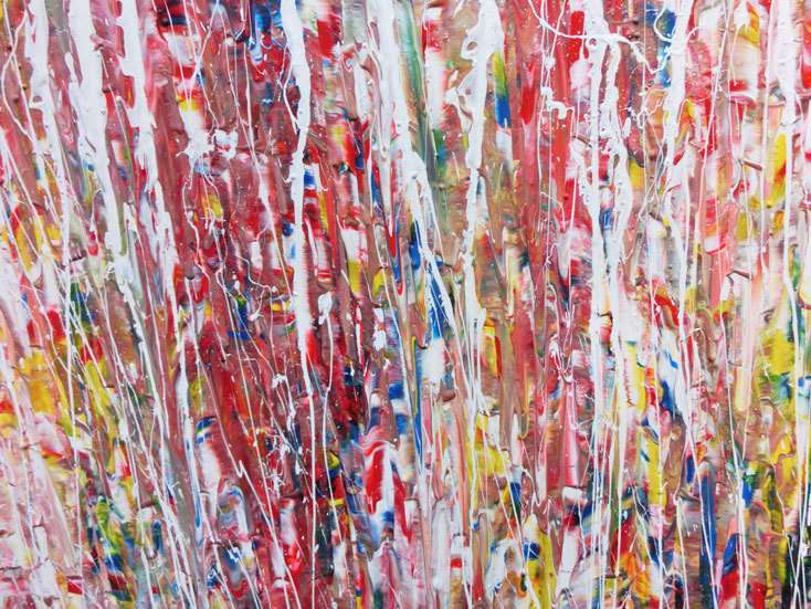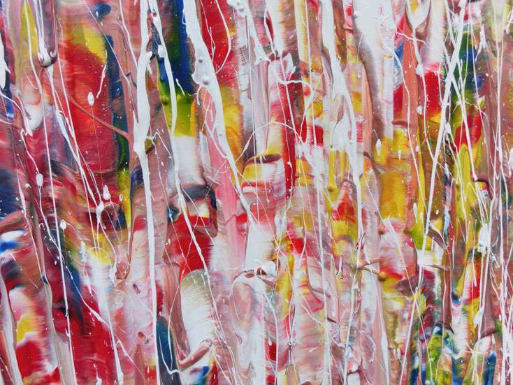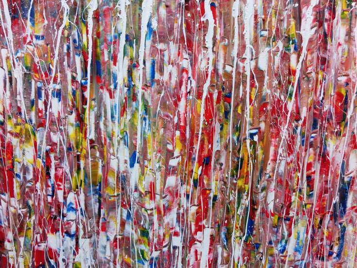 Dieses abstrakte Acrylbild ist ein handgemaltes Original vom Künstler Alex Zerr aus Bad Lisppringe und ist im Jahr 2014 in seinem Atelier entstanden. Das Bild hat eine Größe von 100x200cm und ist bereits auf einem hochwertigen und stabilem Rahmen aufgespannt. Dadurch kann das Bild nach der Lieferung direkt an die Wand gehängt werden und sofort in Ihrem Raum wirken. Alle Seiten des Gemäldes sind passend zum Motiv bemalt, so dass kein zusätzlicher Rahmen benötigt wird.