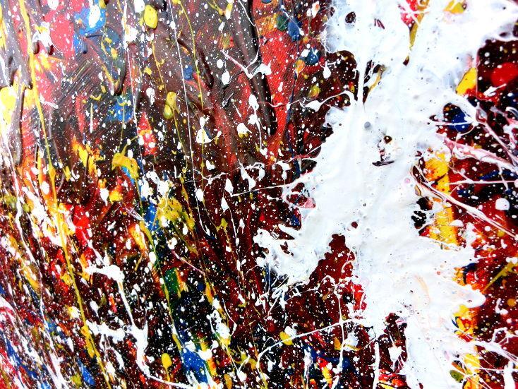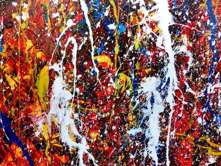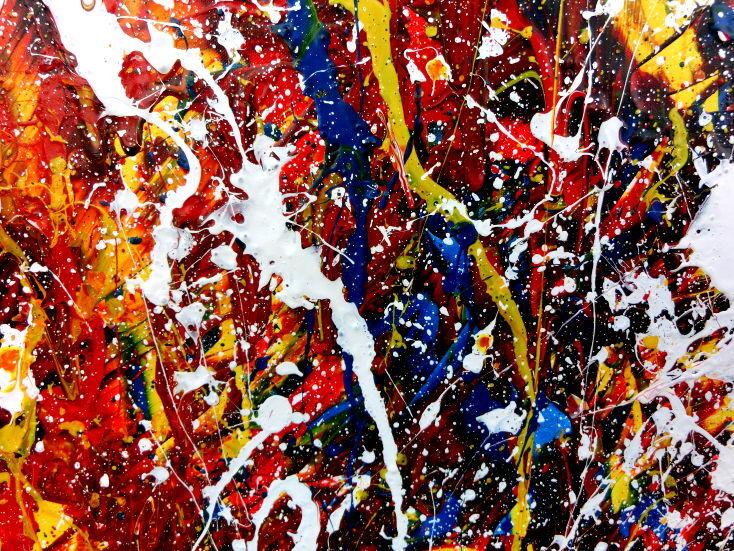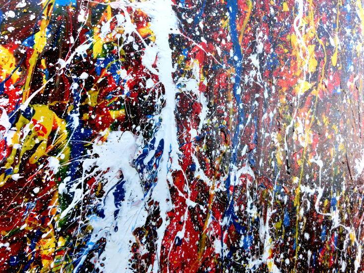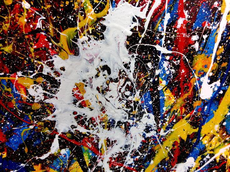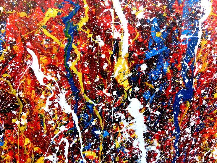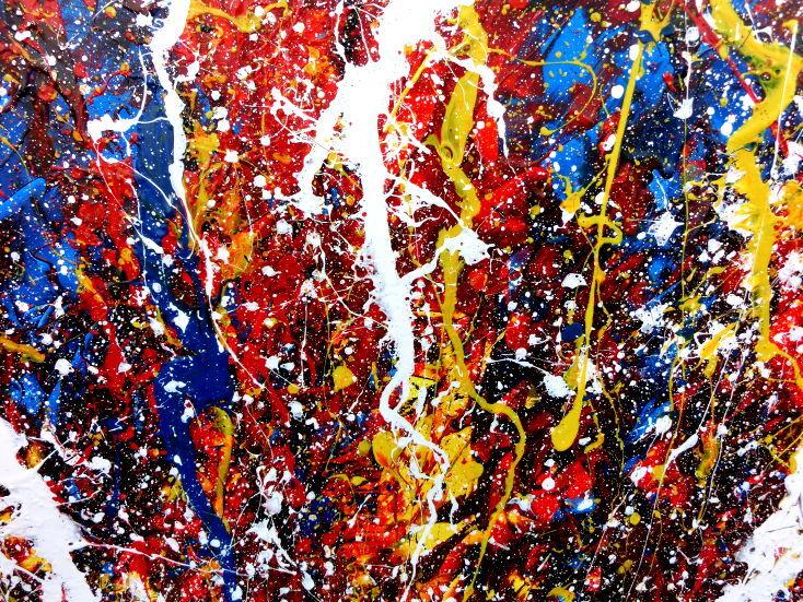 Hallo, ich bin Alex Zerr, der Künstler hinter diesem Gemälde. In meinem Atelier in Bad Lippspringe erschaffe ich abstrakte Acrylbilder, überwiegend im Action-Painting-Stil. Meißtens mit Acrylfarben und auf sehr großen XXL-Leinwänden, die meinem kreativen Prozess besonders viel Freiheit erlauben und oft zu beeindruckenden Gemälden führen.