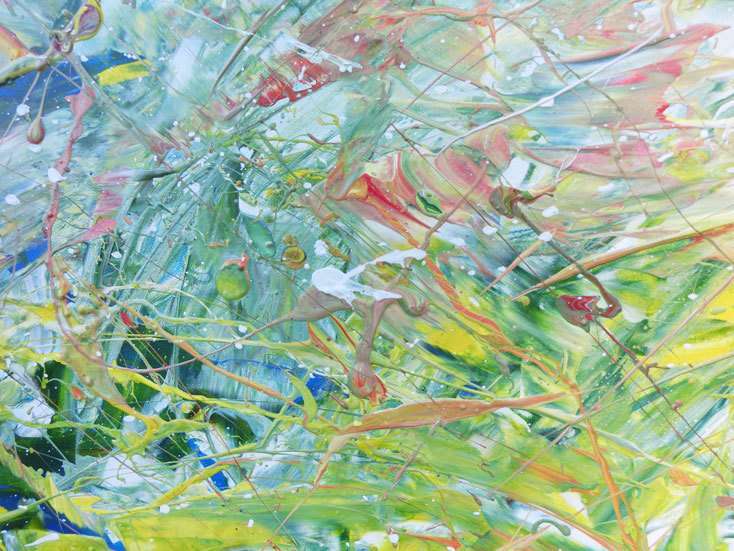 Abstraktes Acrylbild in grün blau und rot Tönen