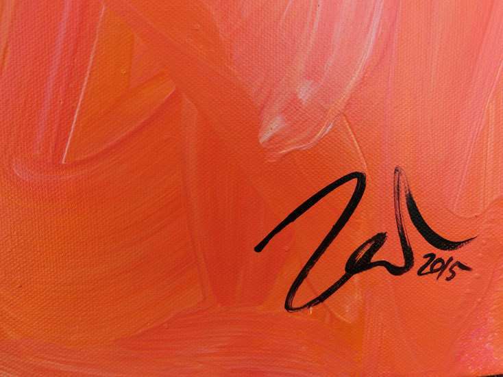 Das Bild ist vom Künster Alex Zerr auf der Vorderseite signiert ggf. ist auf der Rückseite des Bildes der Handabdruck des Künstlers zu finden. Dadurch erhält das Bild ein nicht zu kopierendes und persönliches "Siegel", wodurch Ihnen die Echtheit garantiert wird.