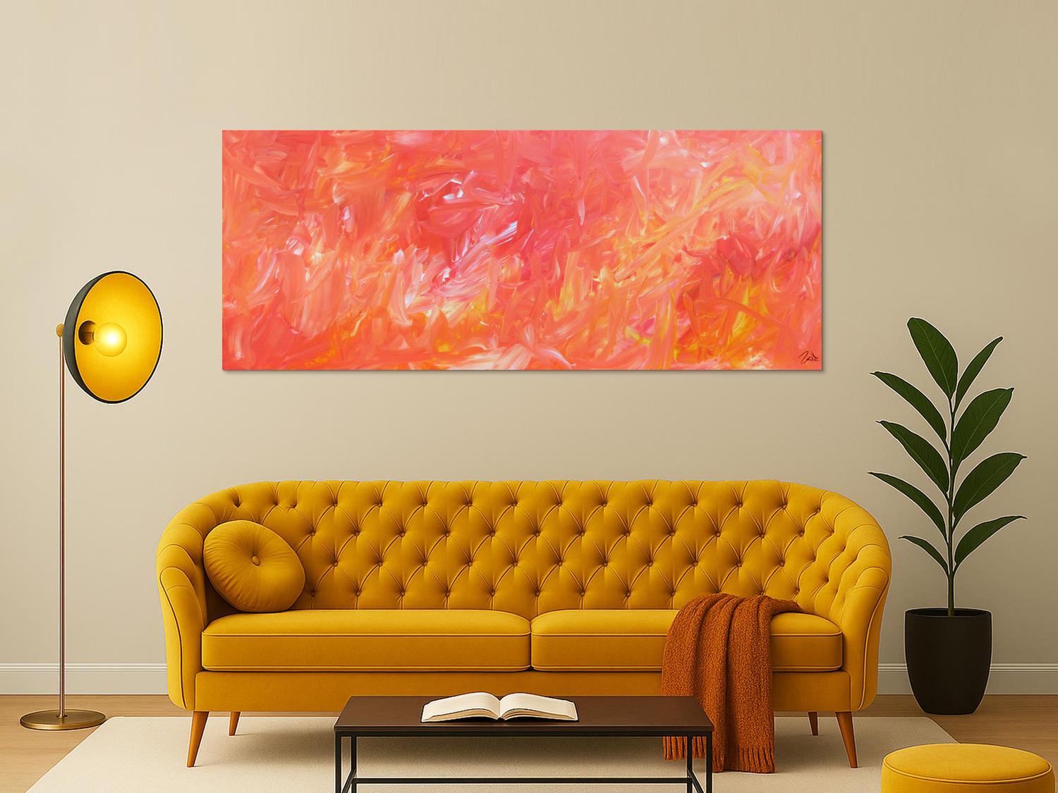 Abstraktes Gemälde auf Leinwand Abstraktes Acrylbild in hellen Farben rosa orange in 80x200cm von Alex Zerr