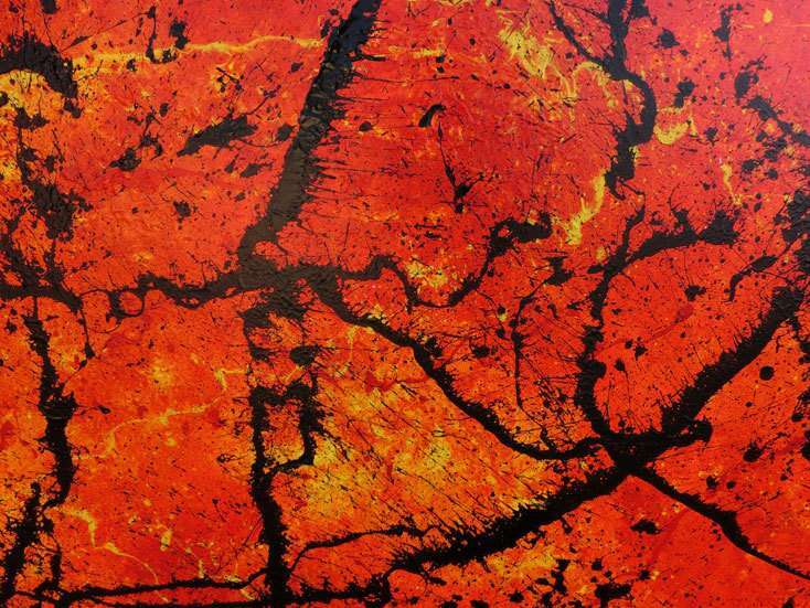 Dieses abstrakte Acrylbild ist ein handgemaltes Original vom Künstler Alex Zerr aus Bad Lisppringe und ist im Jahr 2015 in seinem Atelier entstanden. Das Bild hat eine Größe von 100x150cm und ist bereits auf einem hochwertigen und stabilem Rahmen aufgespannt. Dadurch kann das Bild nach der Lieferung direkt an die Wand gehängt werden und sofort in Ihrem Raum wirken. Alle Seiten des Gemäldes sind passend zum Motiv bemalt, so dass kein zusätzlicher Rahmen benötigt wird.