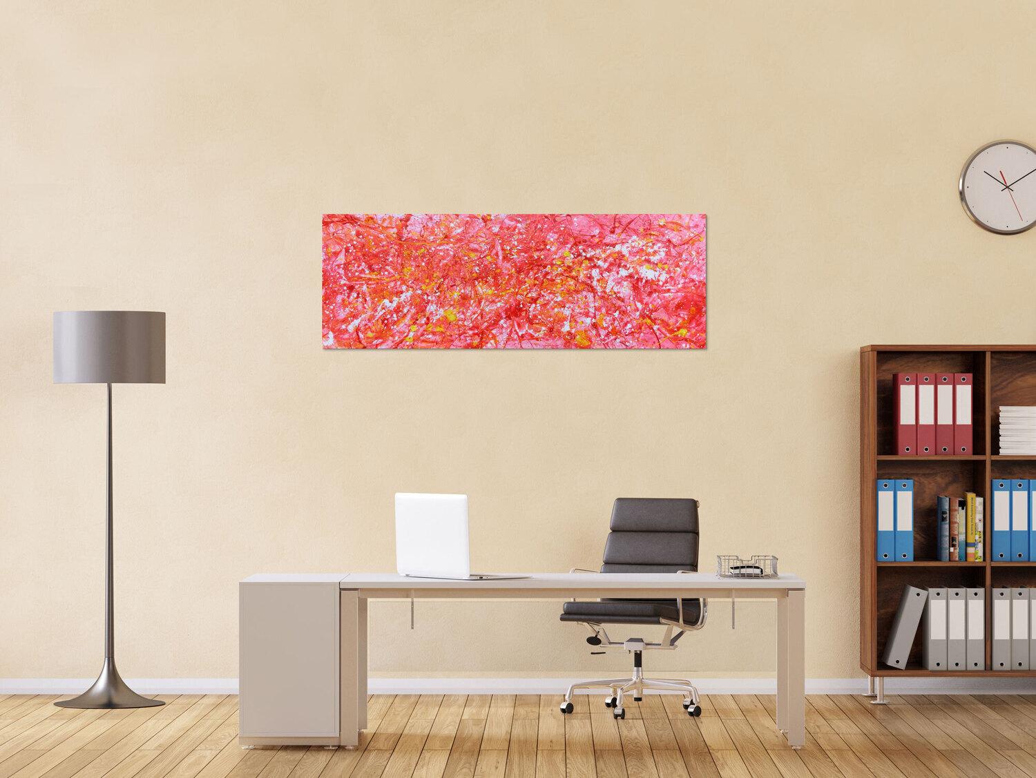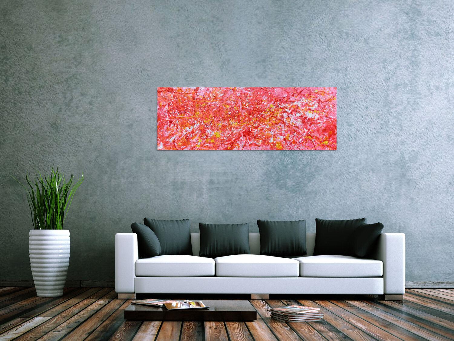 Abstraktes Gemälde auf Leinwand Abstraktes Acrylbild in rosa modern hell freundlich in 50x140cm von Alex Zerr