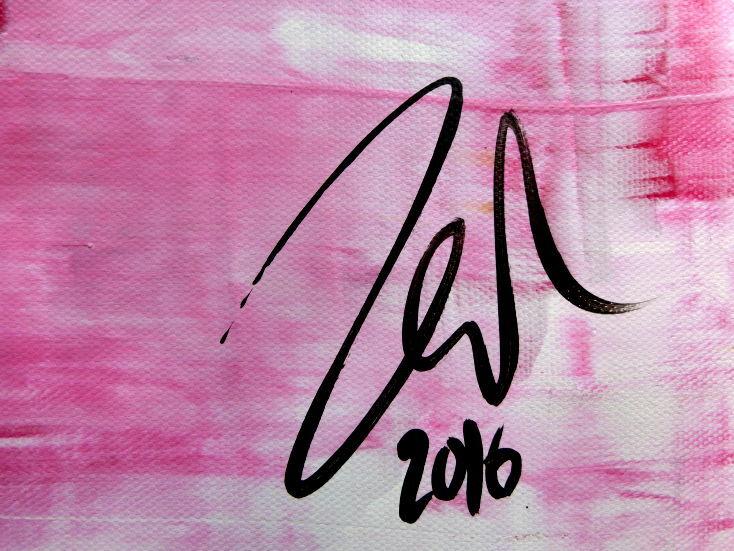 Abstraktes Acrylbild in rosa und weiß mit hellen Farben