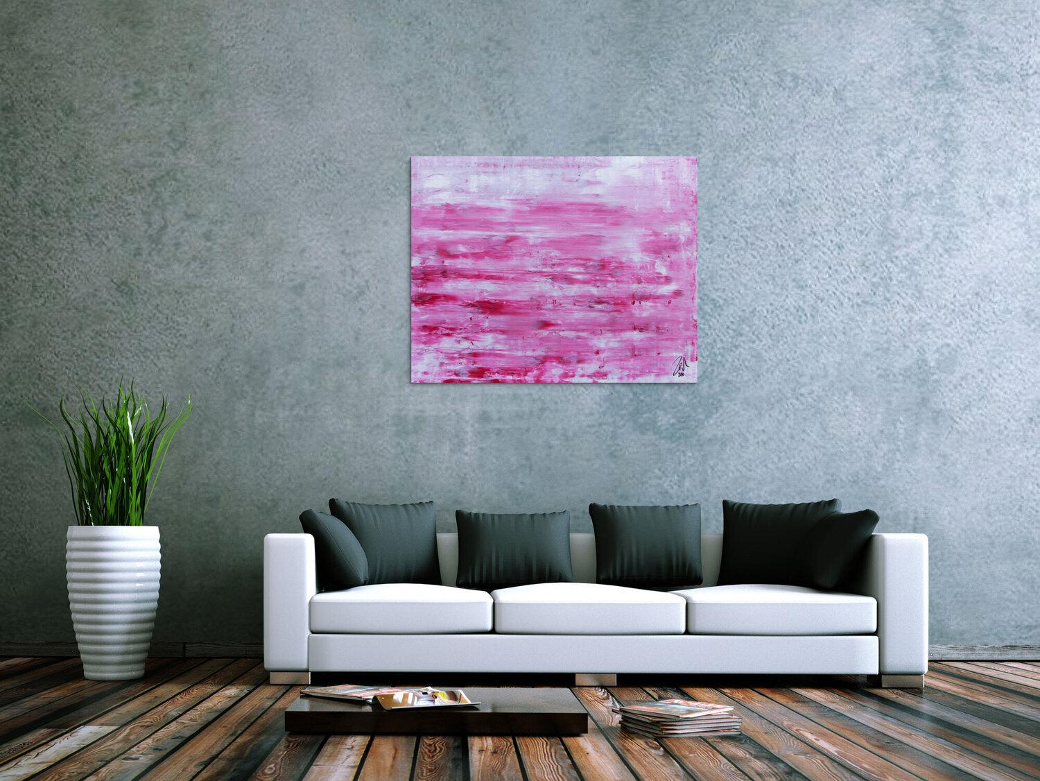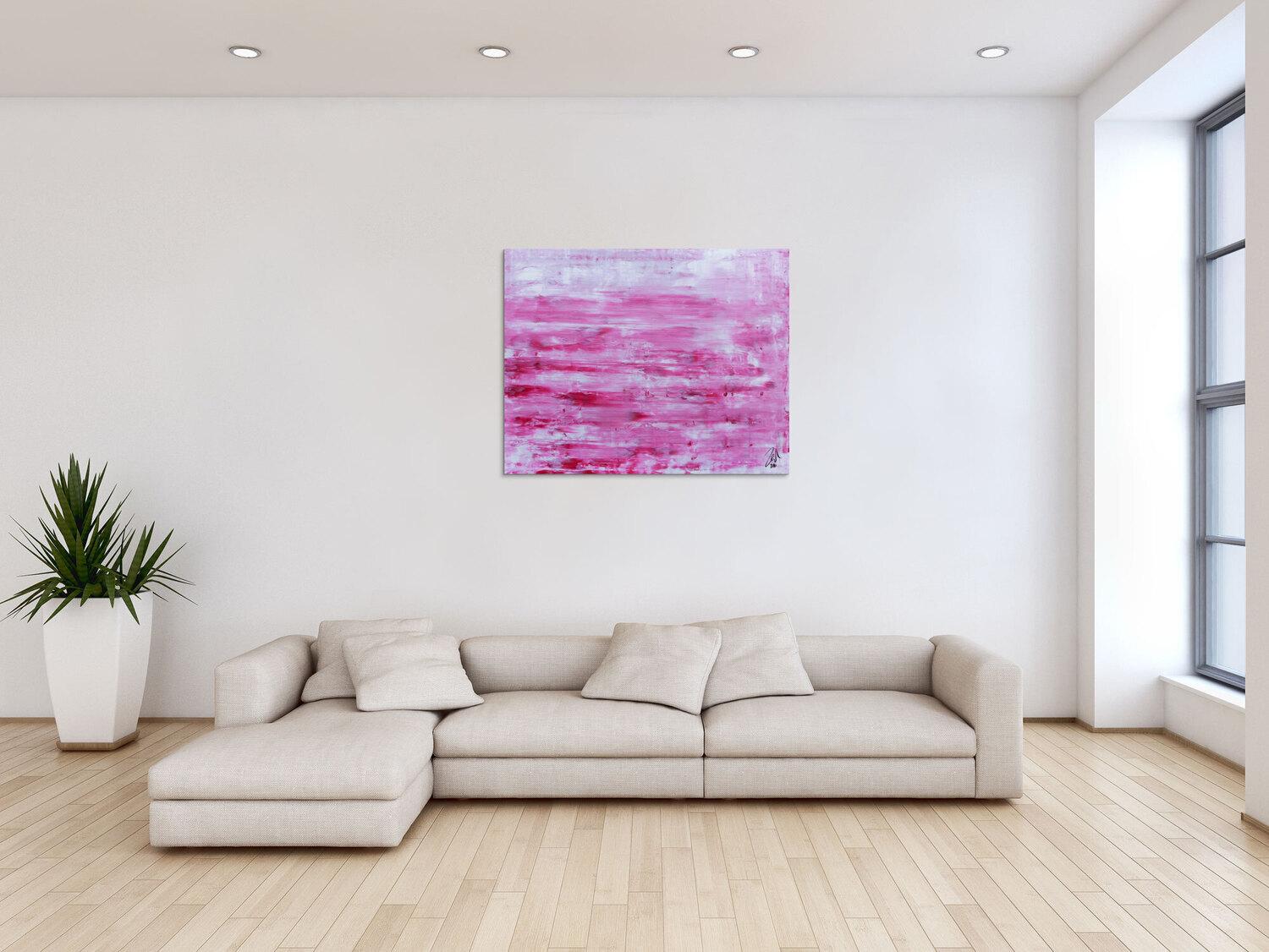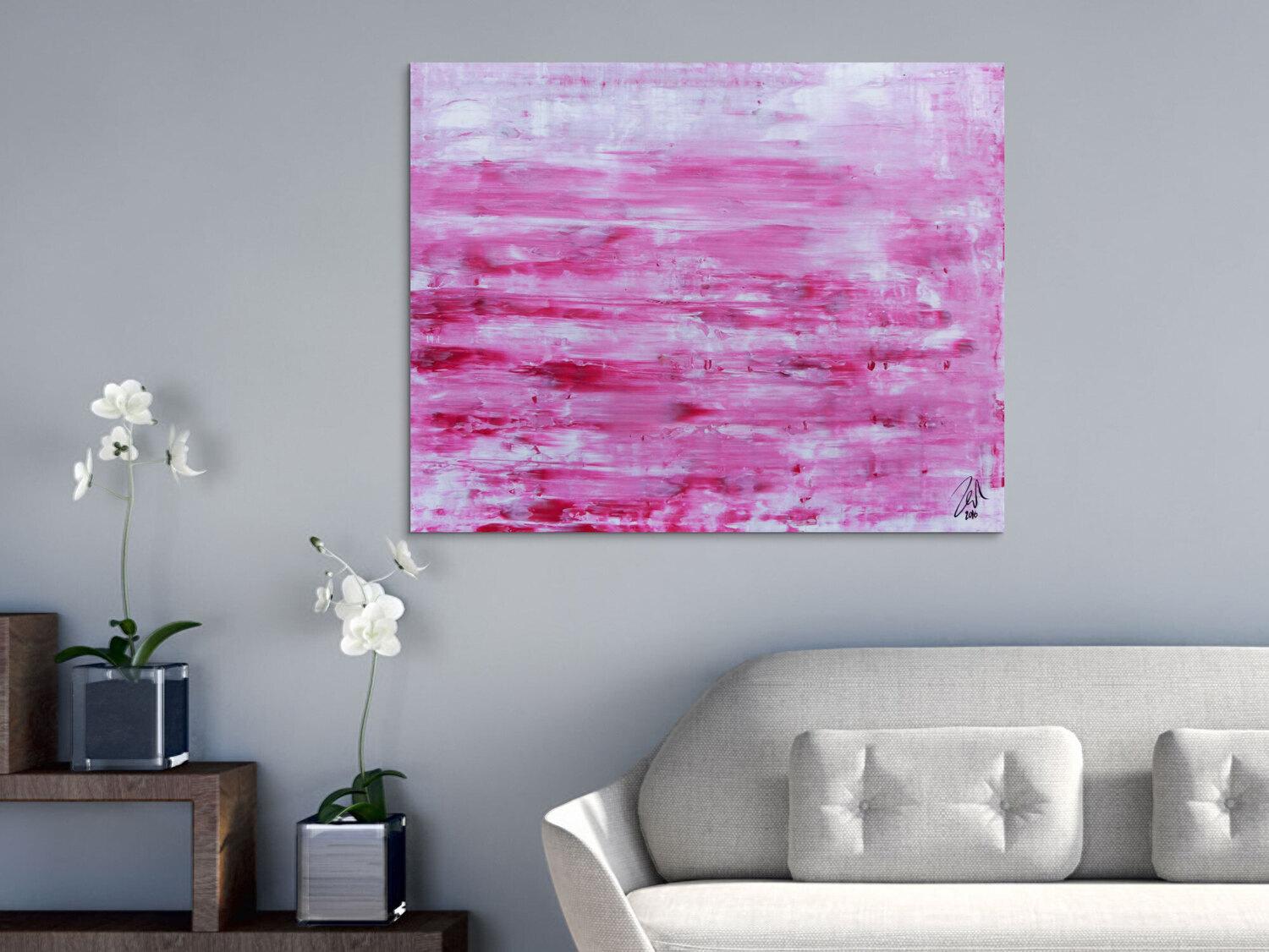Abstraktes Gemälde auf Leinwand Abstraktes Acrylbild in rosa und weiß mit hellen Farben in 80x100cm von Alex Zerr