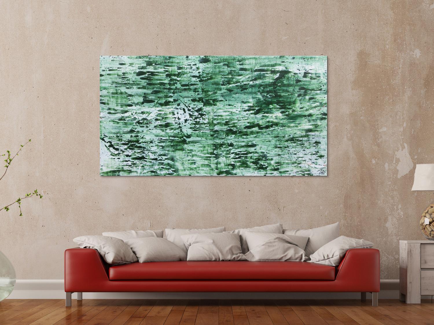 Abstraktes Gemälde auf Leinwand Abstraktes Acrylbild in rün und weiß sehr modern in 95x180cm von Alex Zerr
