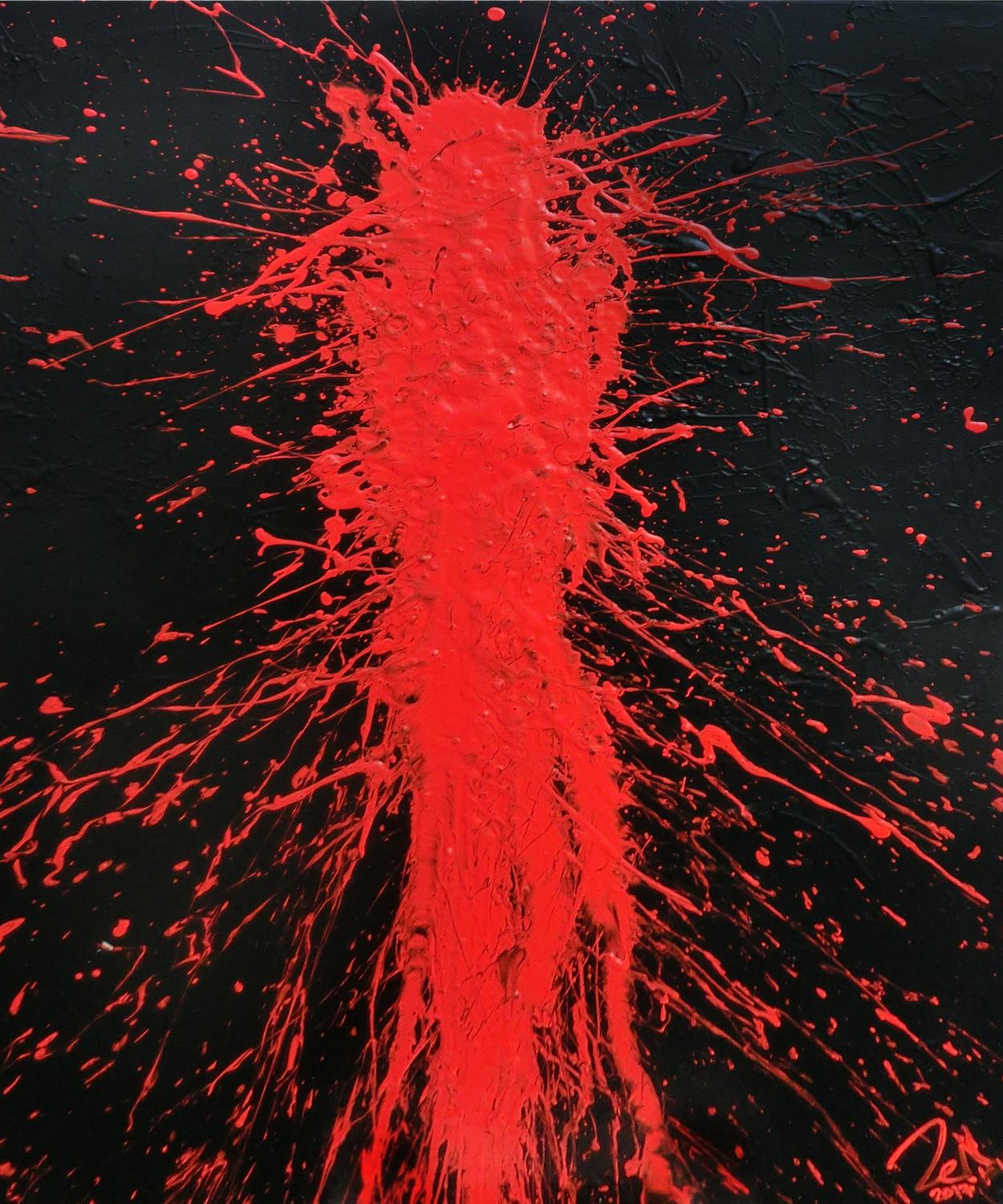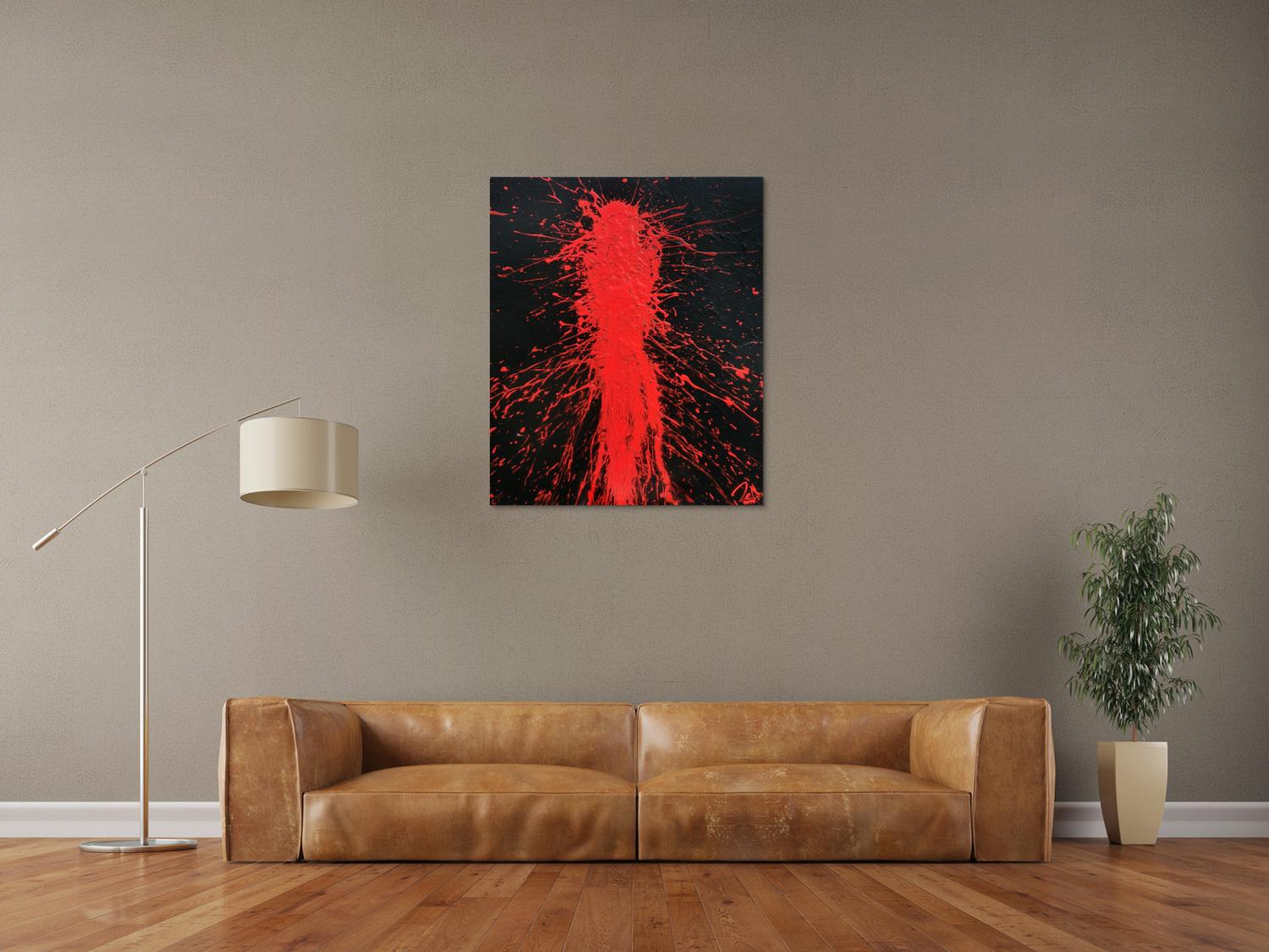 Abstraktes Acrylbild in schwarz und rot Action Painting Shplash Art sehr modern