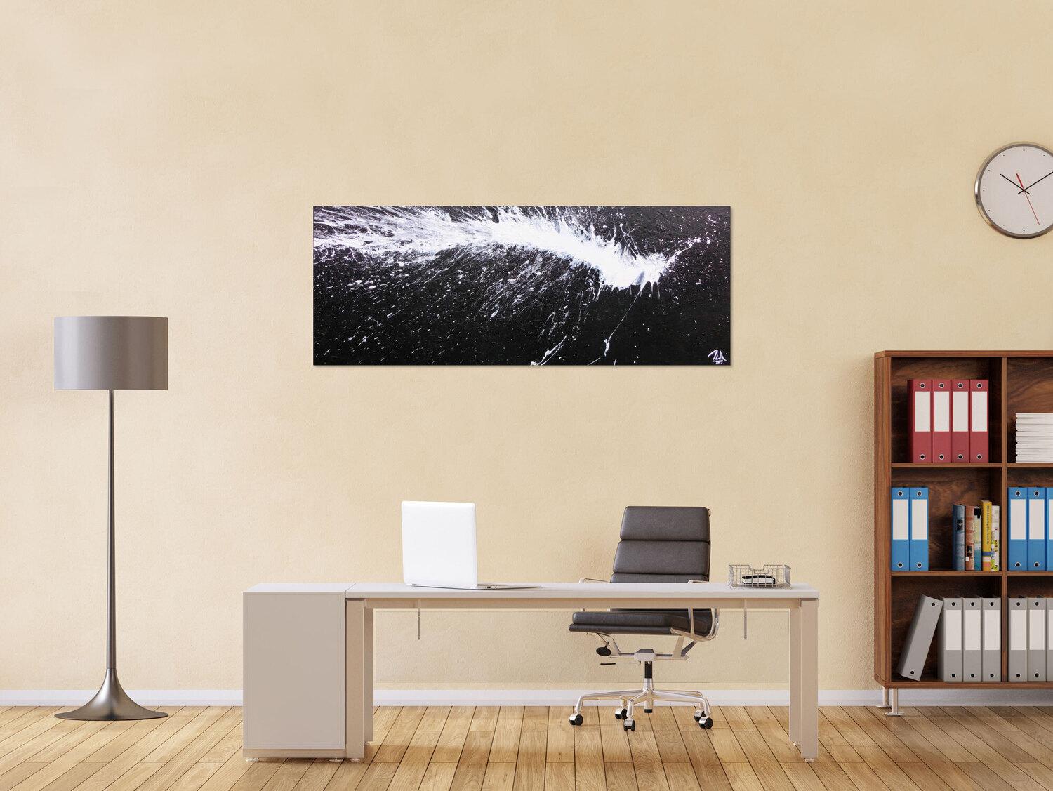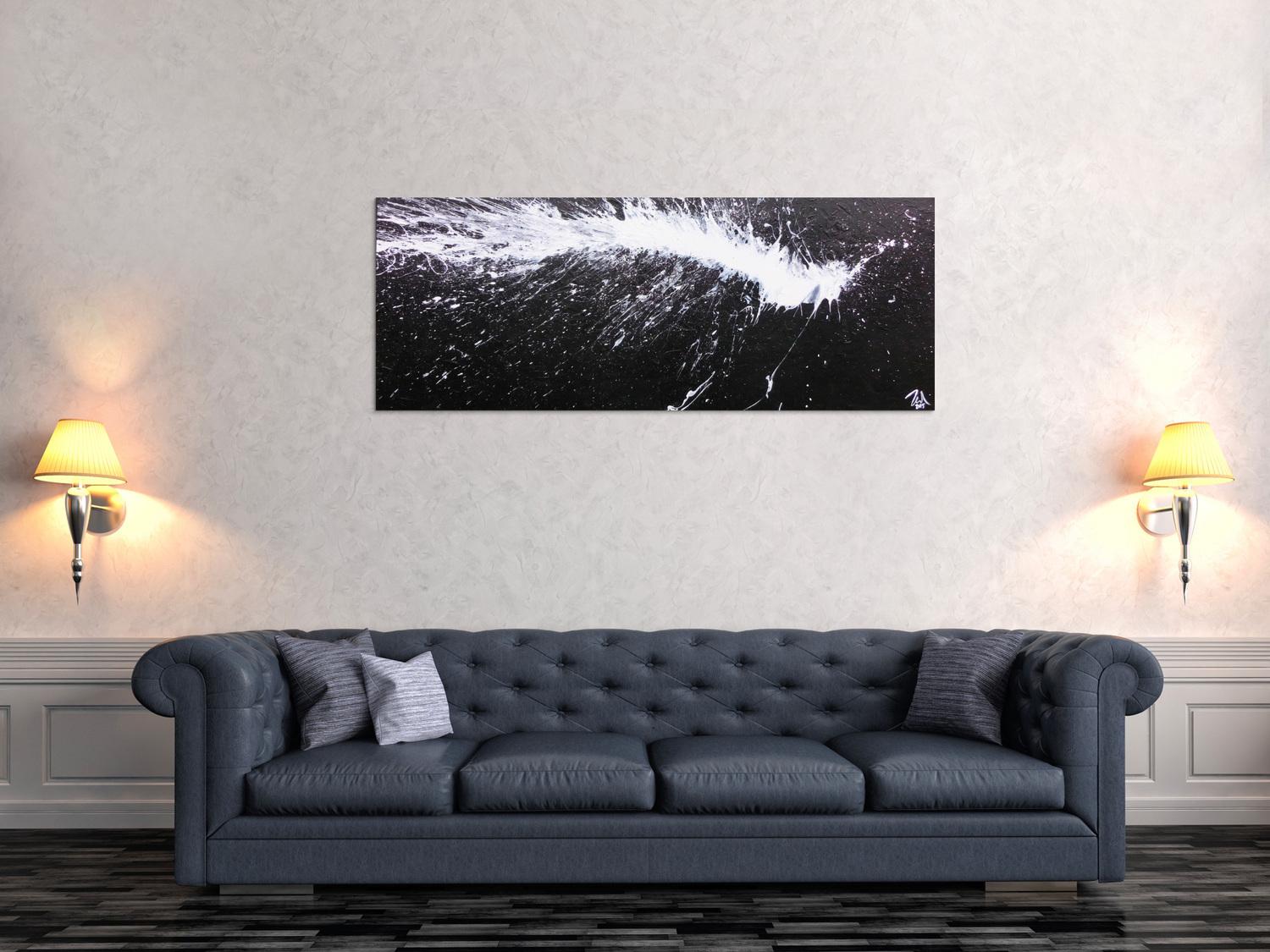 Abstraktes Gemälde auf Leinwand Abstraktes Acrylbild in schwarz weiß modern und minimalistisch in 60x150cm von Alex Zerr