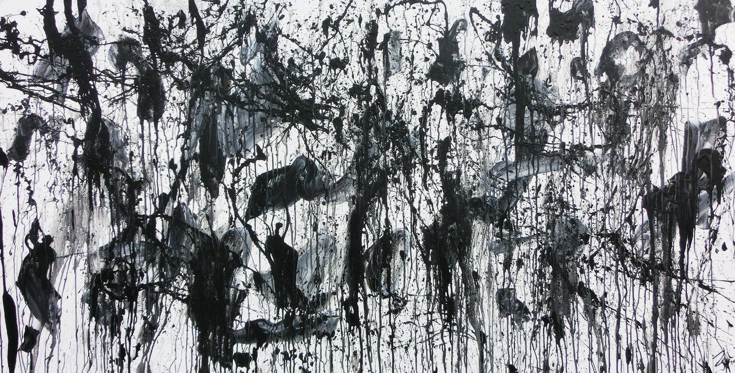 Abstraktes Acrylbild in schwarz weiß modern und zeitgenössich