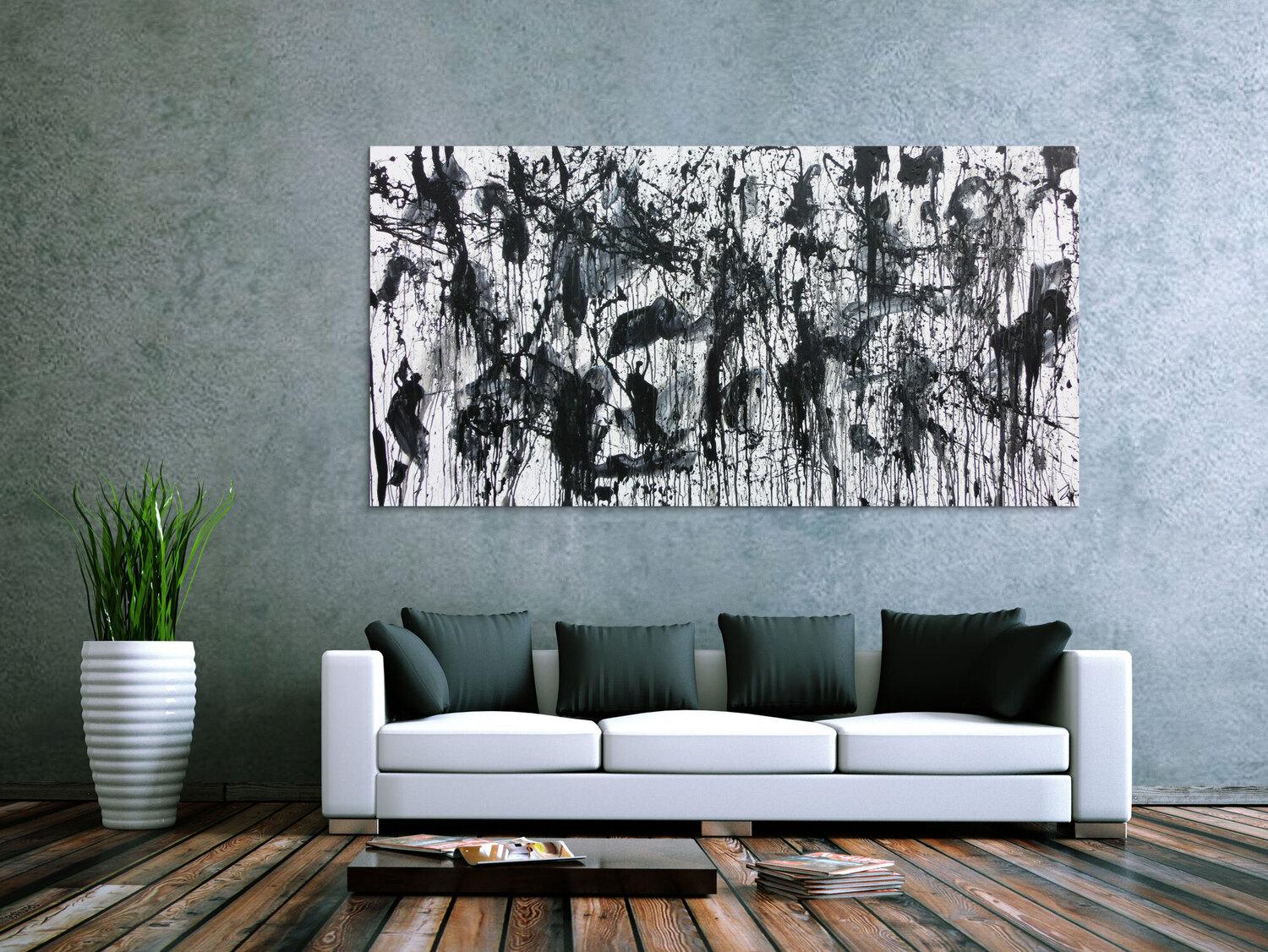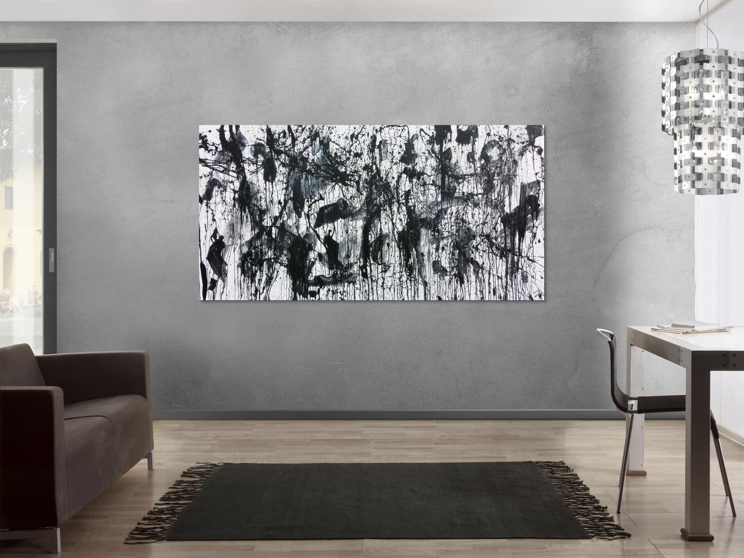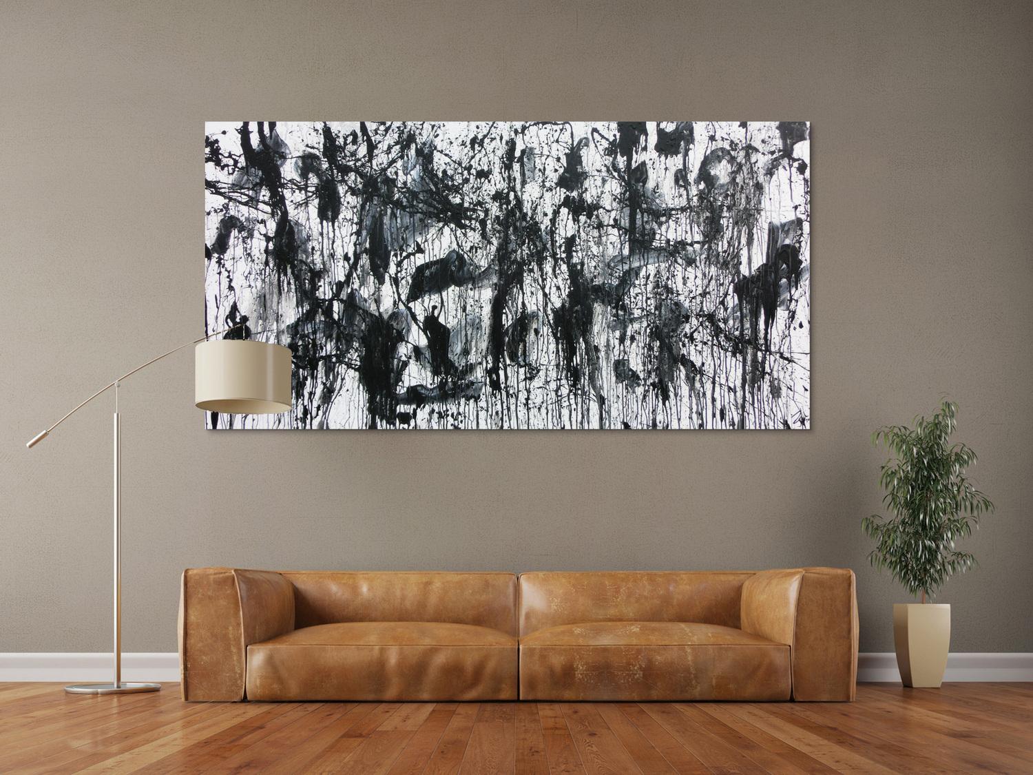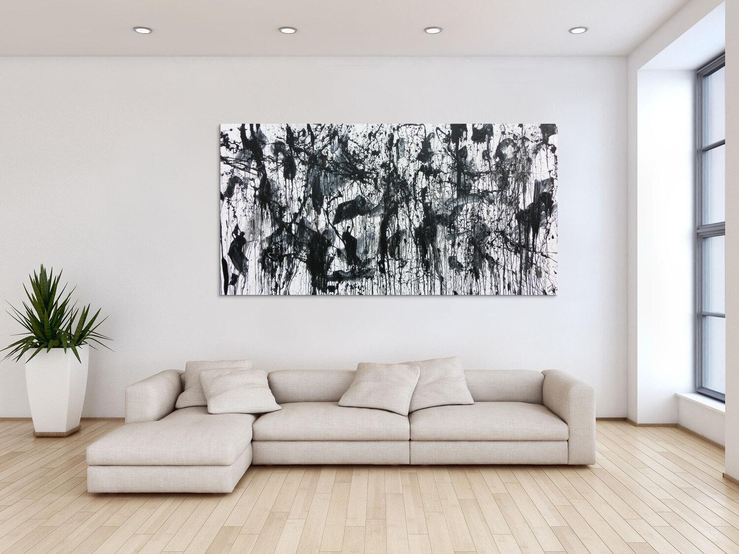 Abstraktes Gemälde auf Leinwand Abstraktes Acrylbild in schwarz weiß modern und zeitgenössich in 100x200cm von Alex Zerr