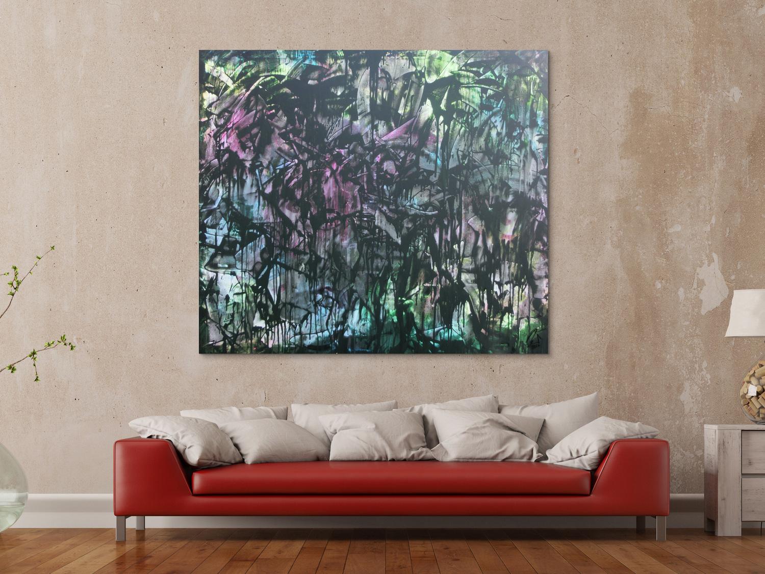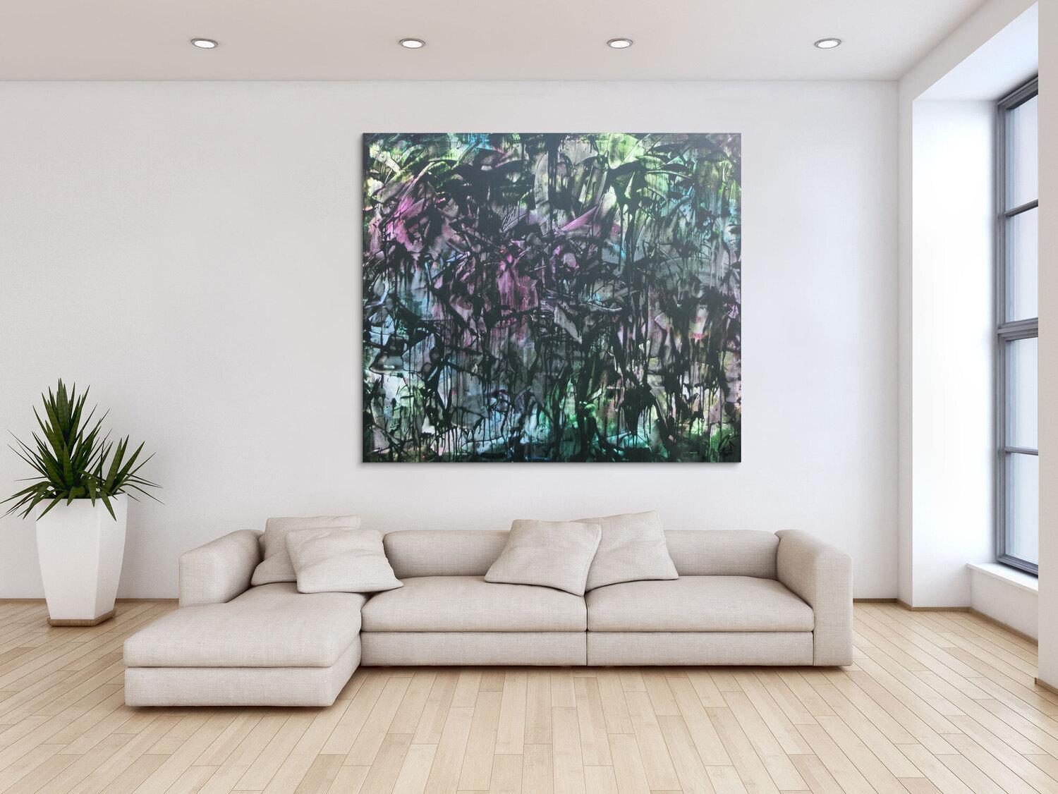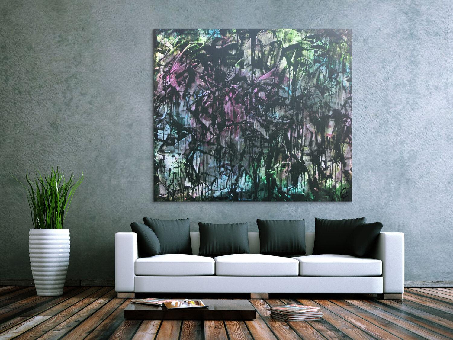 Abstraktes Gemälde auf Leinwand Abstraktes Acrylbild in Spachteltechnik sehr modern bunt und dunkel in 140x160cm von Alex Zerr