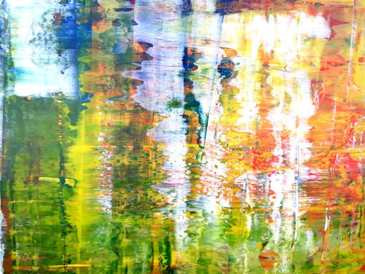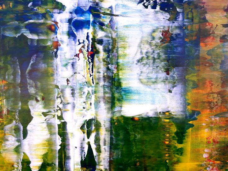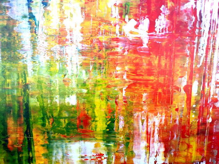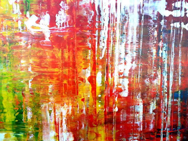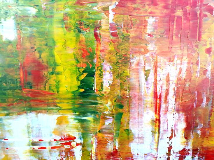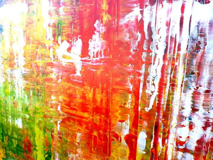 Abstraktes Acrylbild in Spachteltechnik sehr modern und bunt viele Farben rot gelb grün blau weiß
