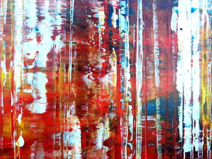 Hallo, ich bin Alex Zerr, der Künstler hinter diesem Gemälde. In meinem Atelier in Bad Lippspringe erschaffe ich abstrakte Acrylbilder, überwiegend im Action-Painting-Stil. Meißtens mit Acrylfarben und auf sehr großen XXL-Leinwänden, die meinem kreativen Prozess besonders viel Freiheit erlauben und oft zu beeindruckenden Gemälden führen.
