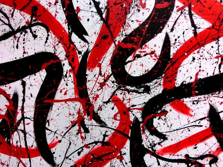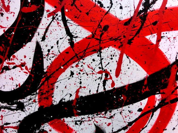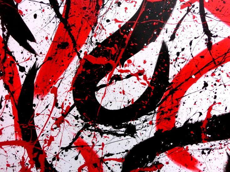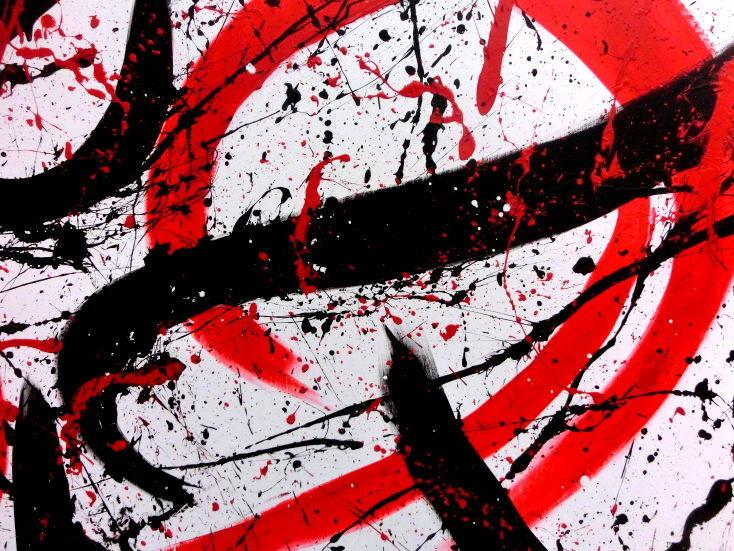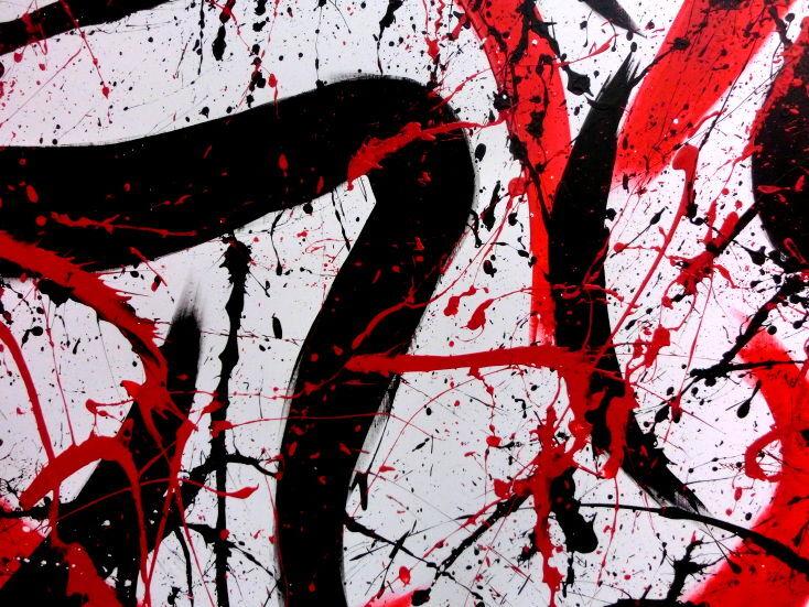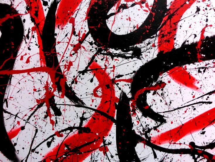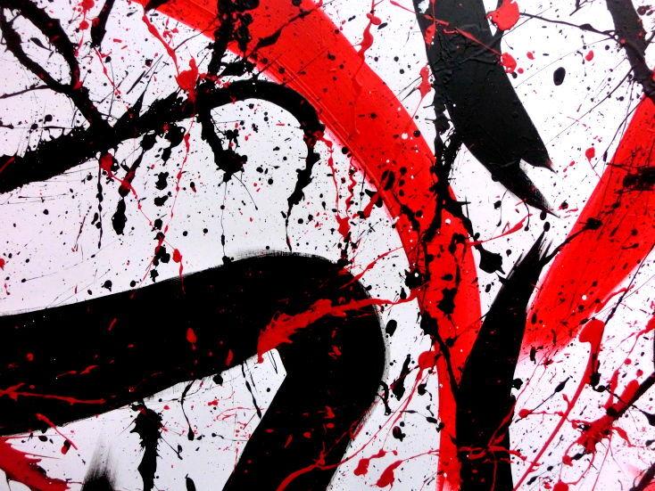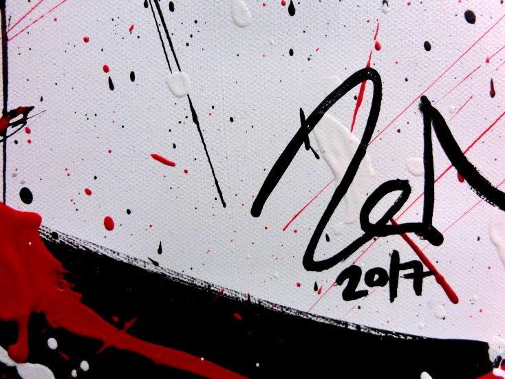Abstraktes Acrylbild in weiß mit schwarz und rot Action Paitning sehr modern zeitgenössisch