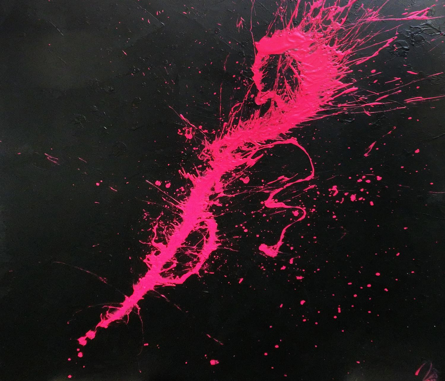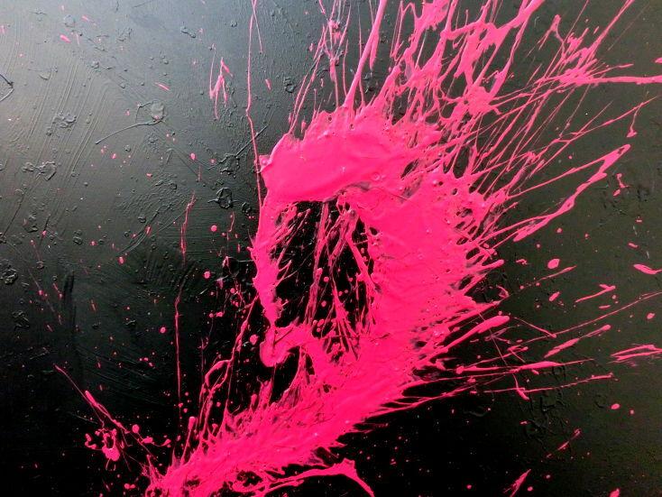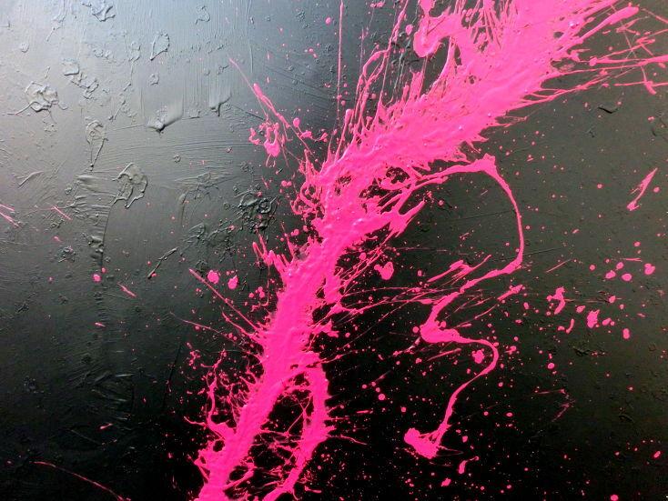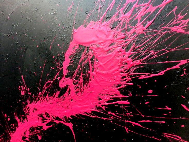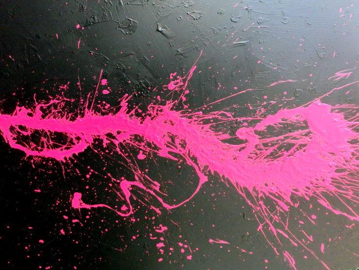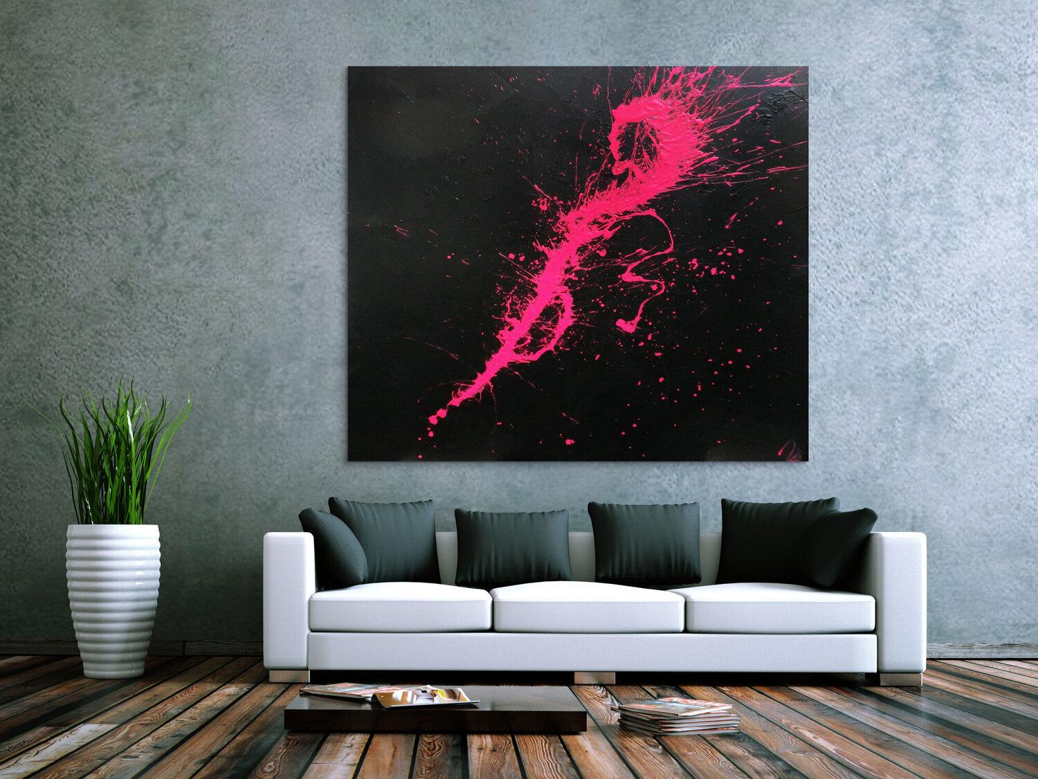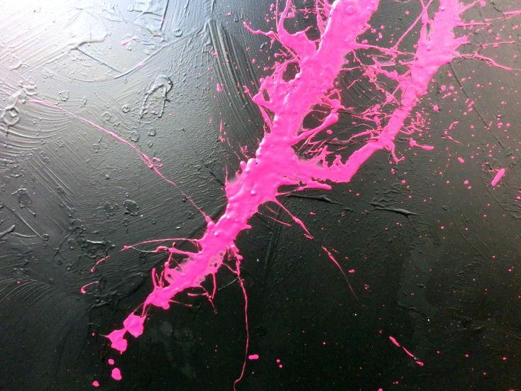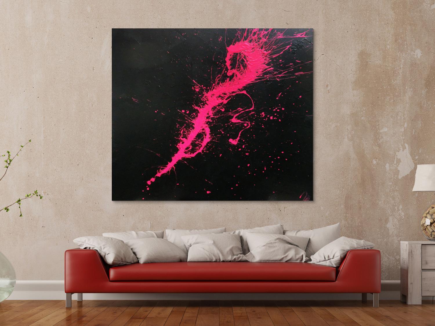 Abstraktes Acrylbild Minimalistisch sehr modern schwarz und pink Action Painting Splash Art