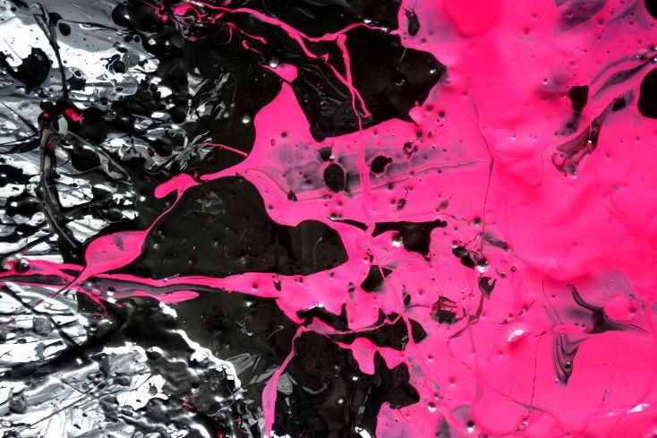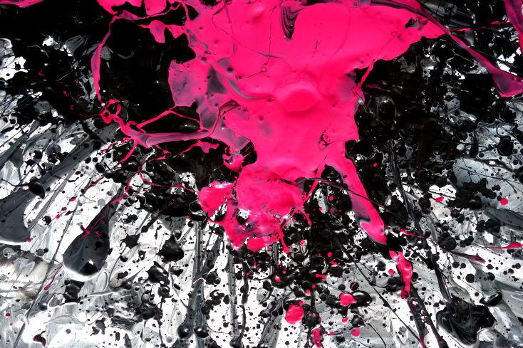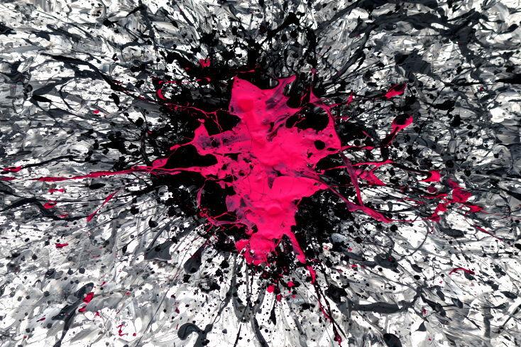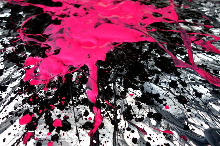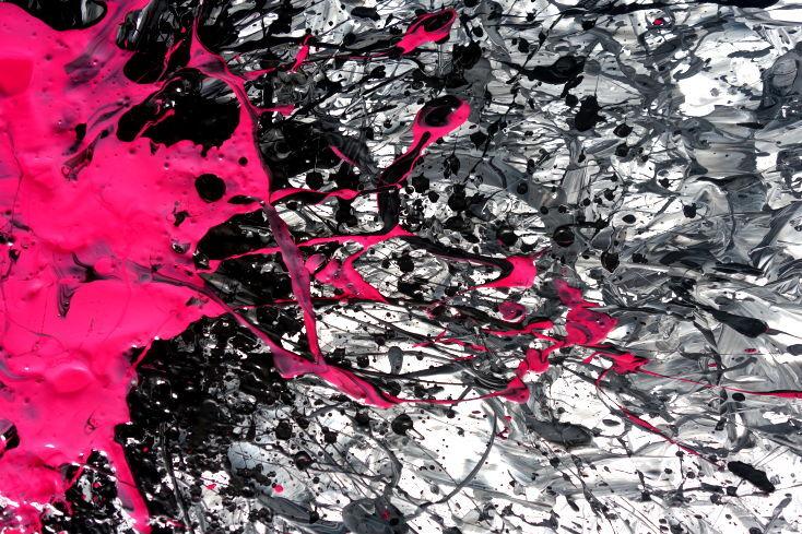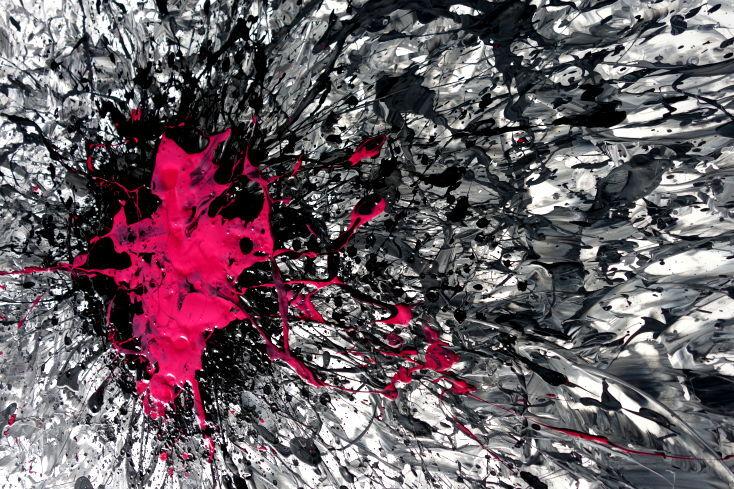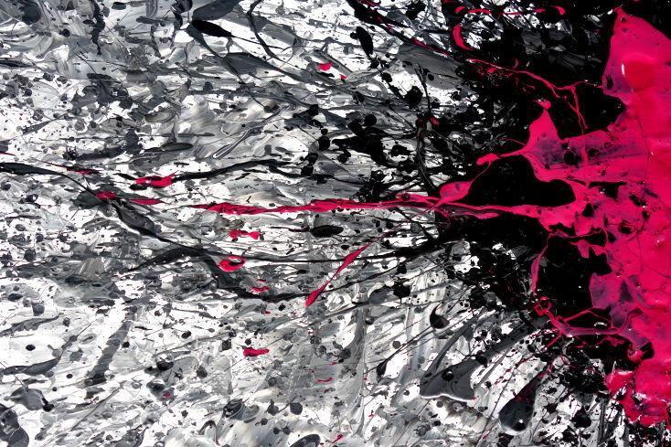 Abstraktes Acrylbild Mischtechnik Action Painting Splash Art grau weiß scharz pink Modern Art
